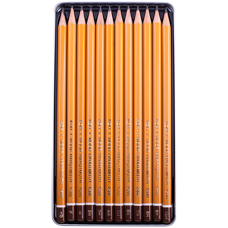 Набор карандашей ч/г Koh-I-Noor "1500 Technic" 12шт., HB-10H, заточен., метал. пенал (1502012007PLRU)