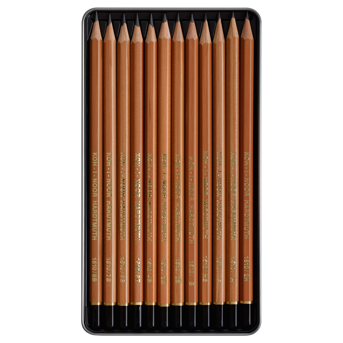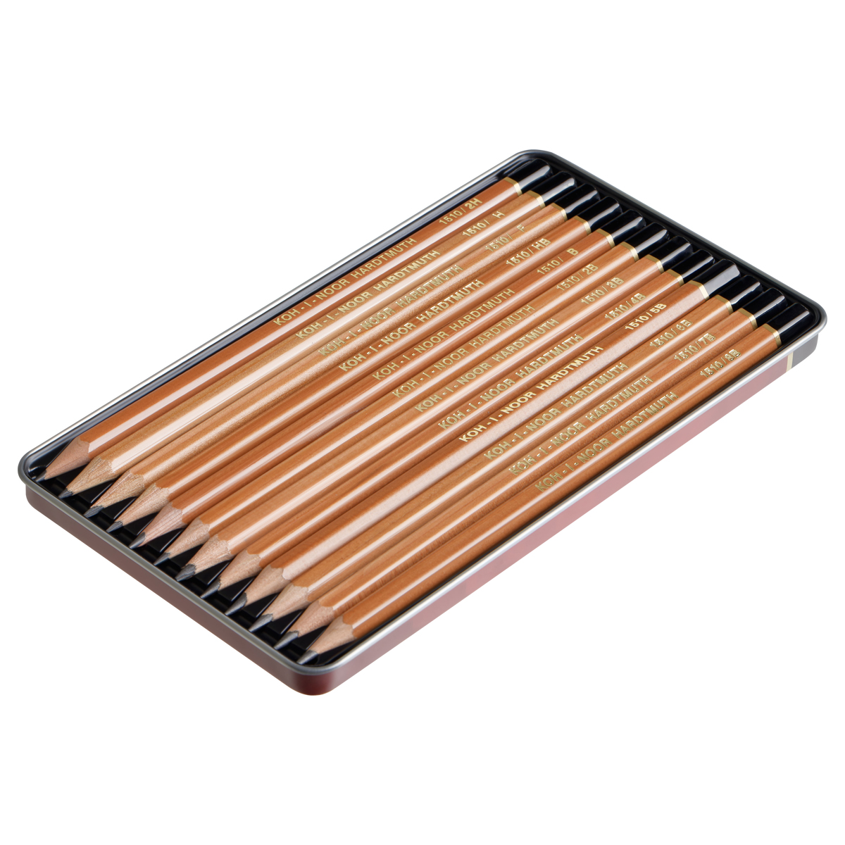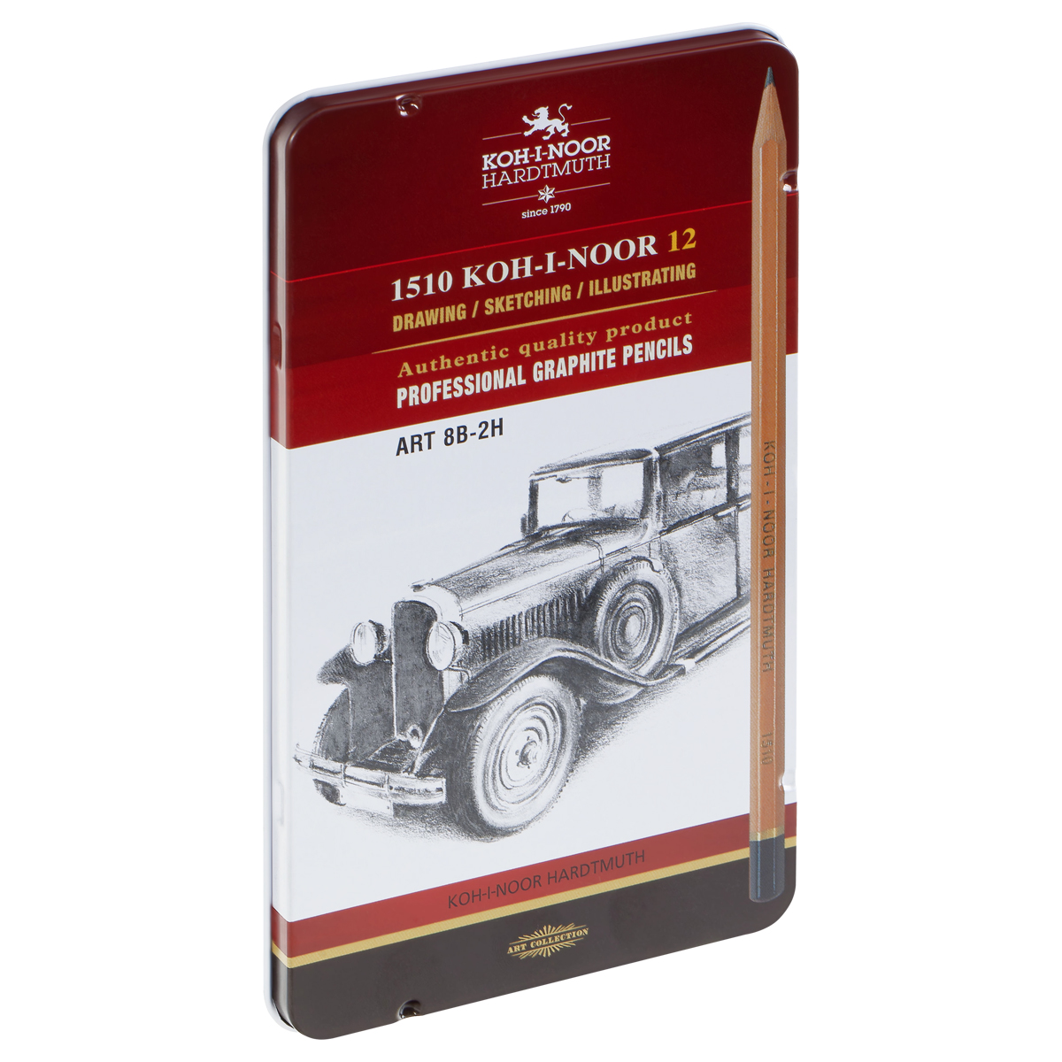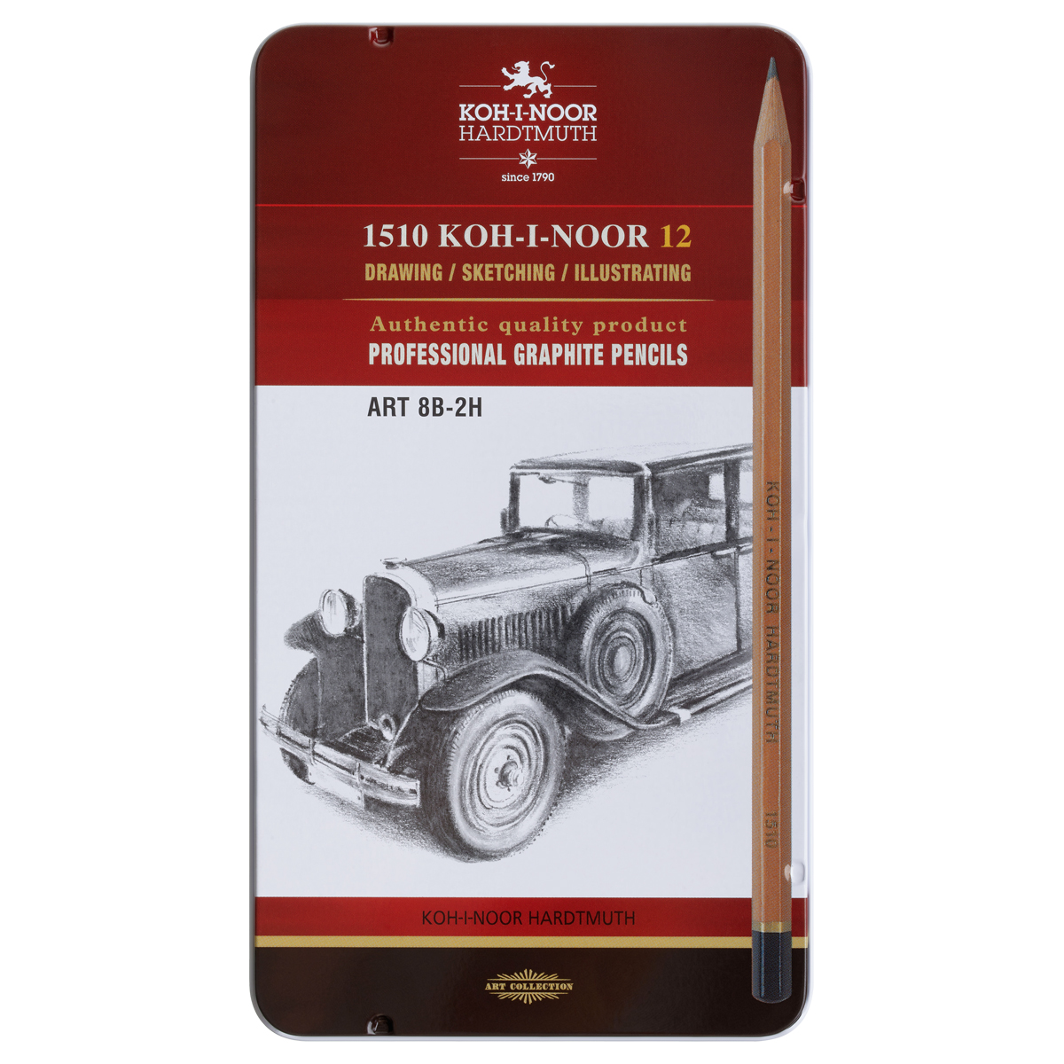 Набор карандашей ч/г Koh-I-Noor "1512" 12шт., 8B-2H, металл. пенал, с неокрашенным корпусом (1512N12001PL)
