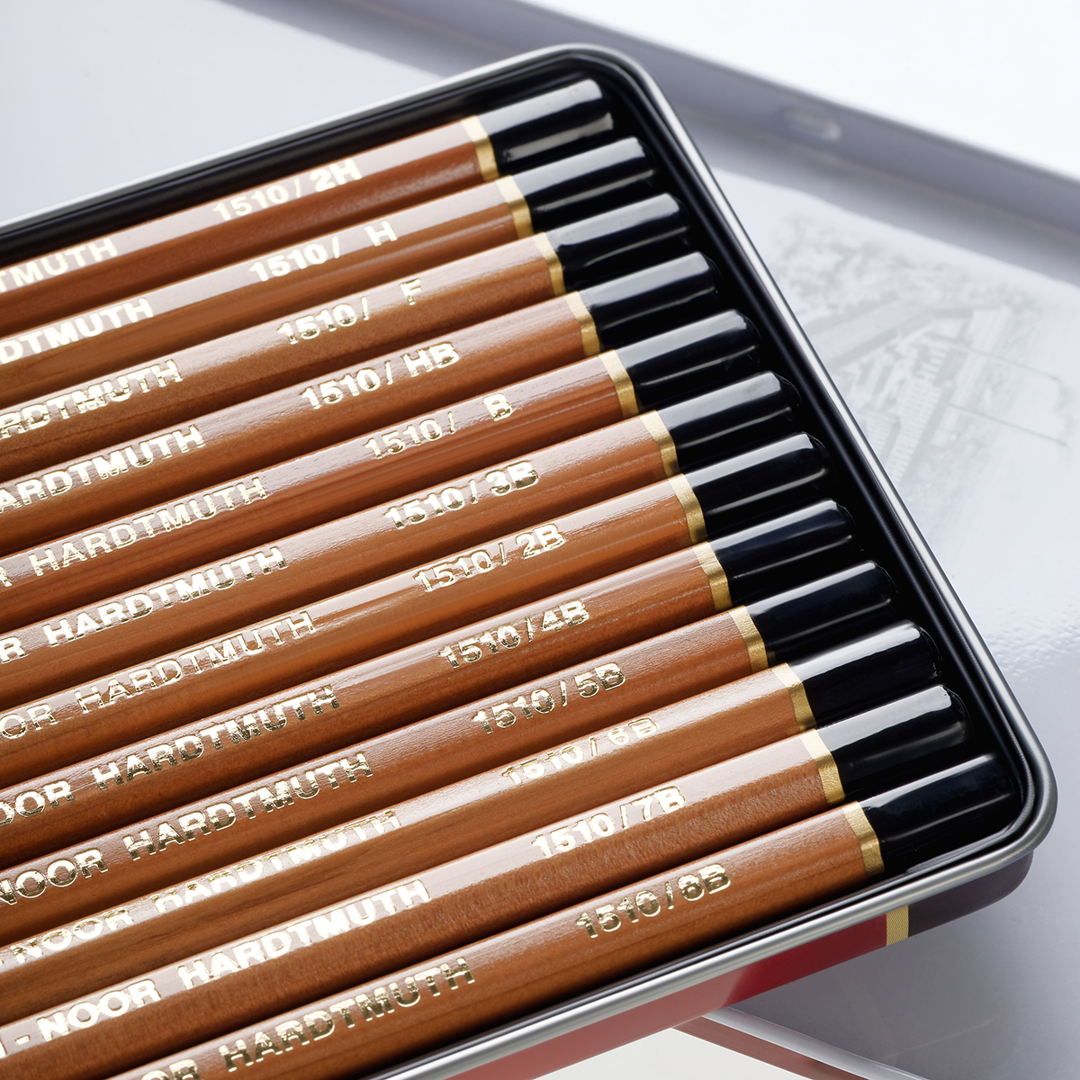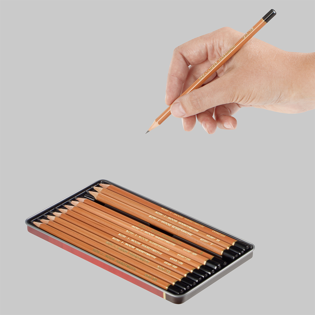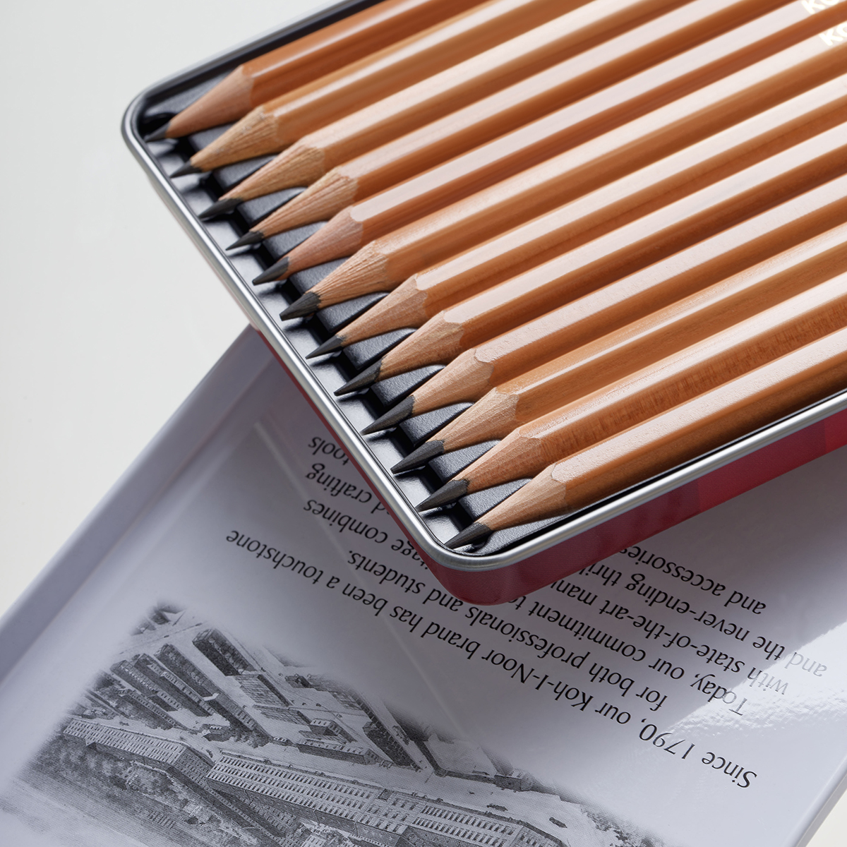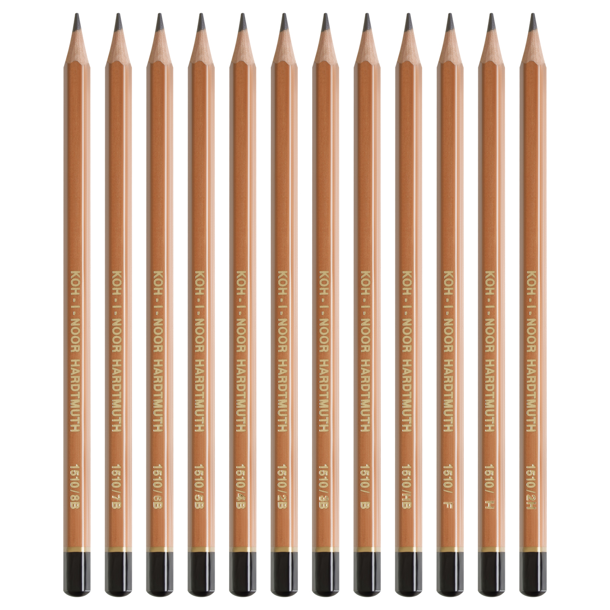 Набор карандашей ч/г Koh-I-Noor "1512" 12шт., 8B-2H, металл. пенал, с неокрашенным корпусом (1512N12001PL)