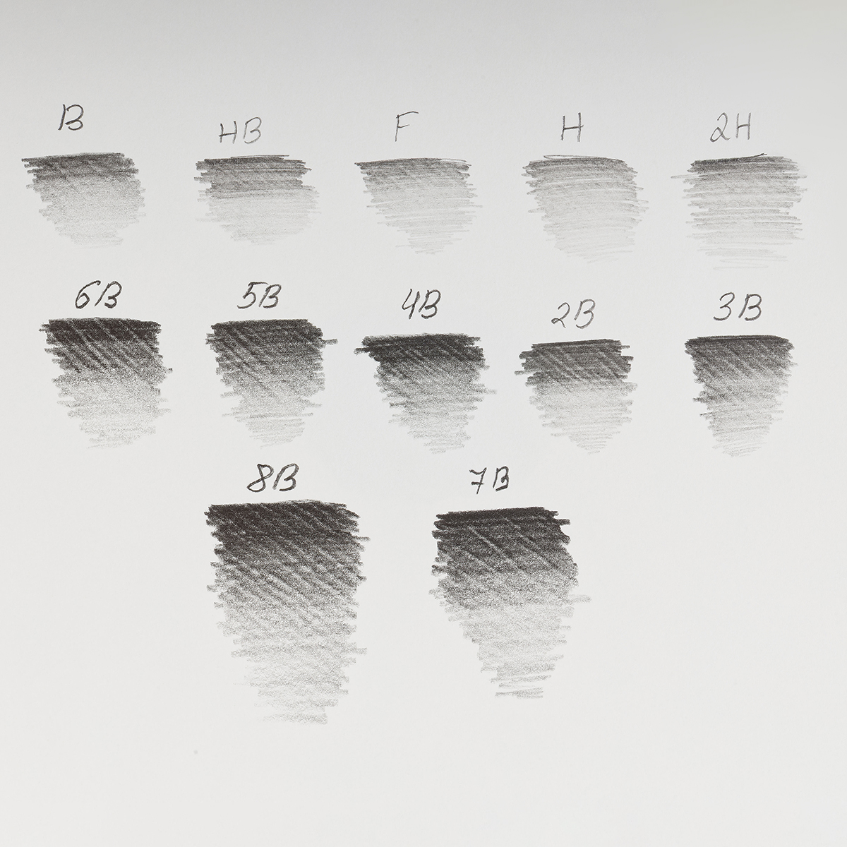 8B, 7B, 6B, 5B, 4B, 3B, 2B, B, HB, F, H, 2H |