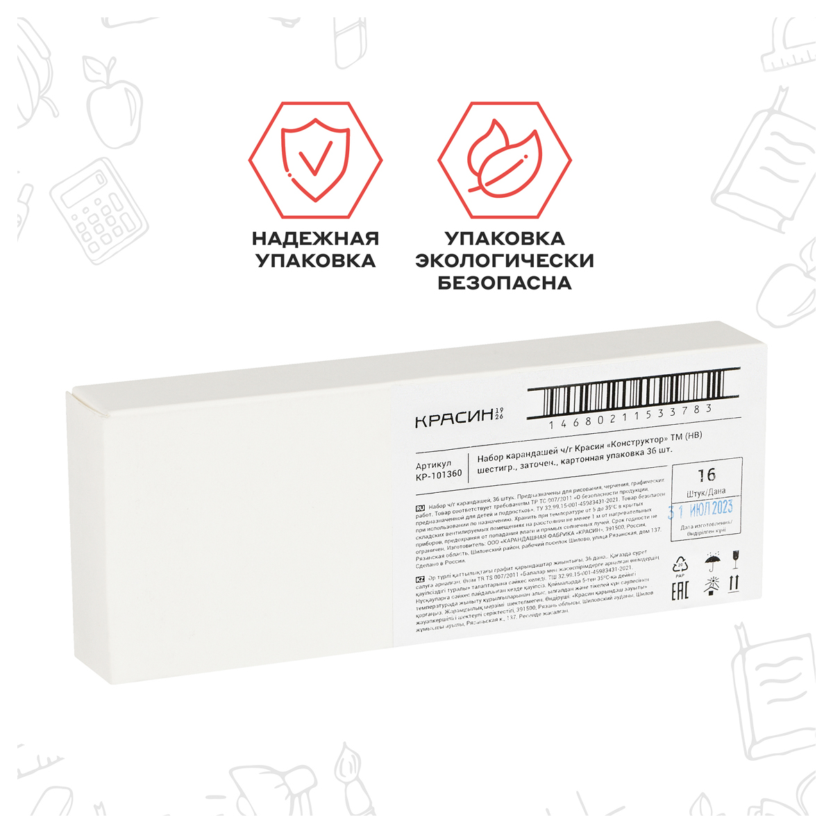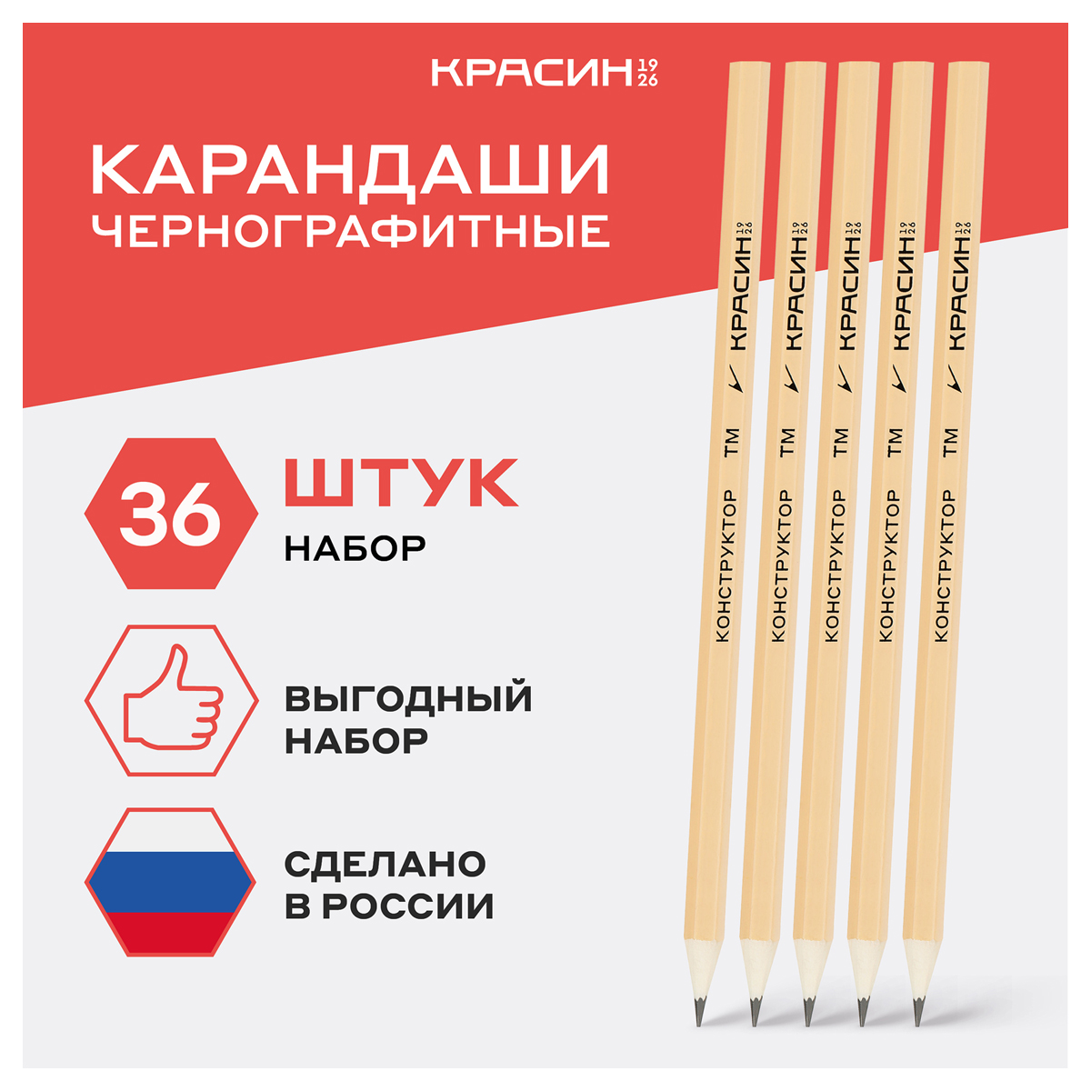 Набор карандашей ч/г Красин "Конструктор" ТМ (HB) 36шт., шестигр., заточен., картонная упаковка КР-101360