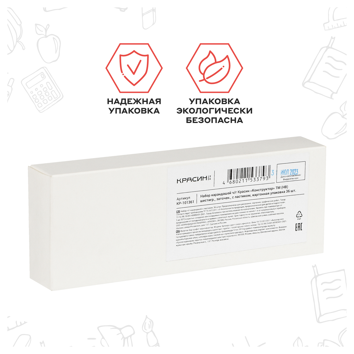 Набор карандашей ч/г Красин "Конструктор" ТМ (HB) 36шт., шестигр., заточен., с ластиком, картонная упаковка КР-101361