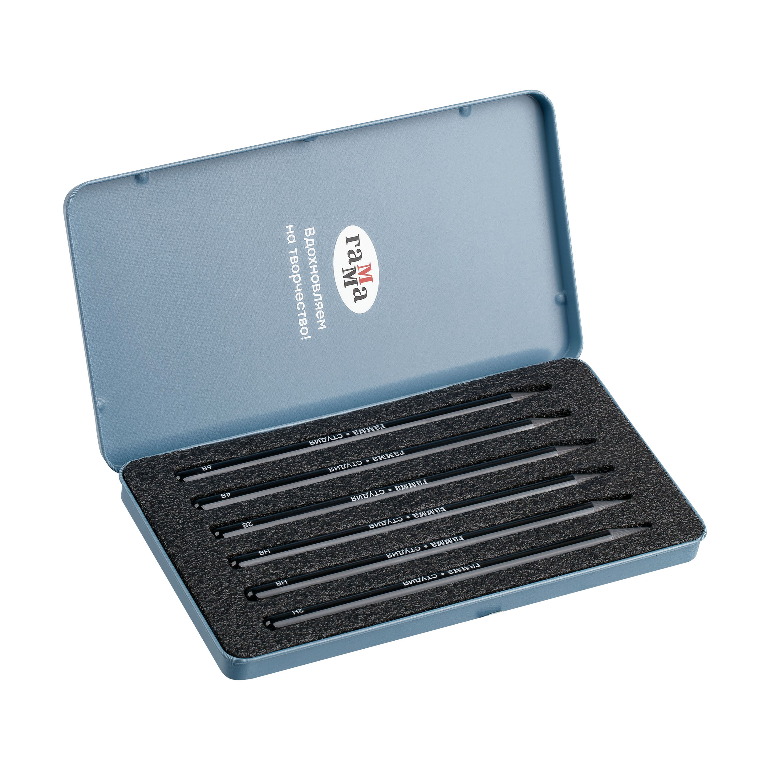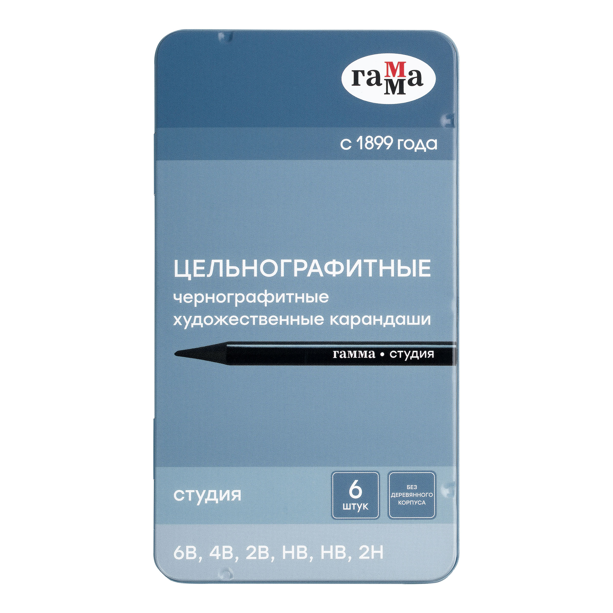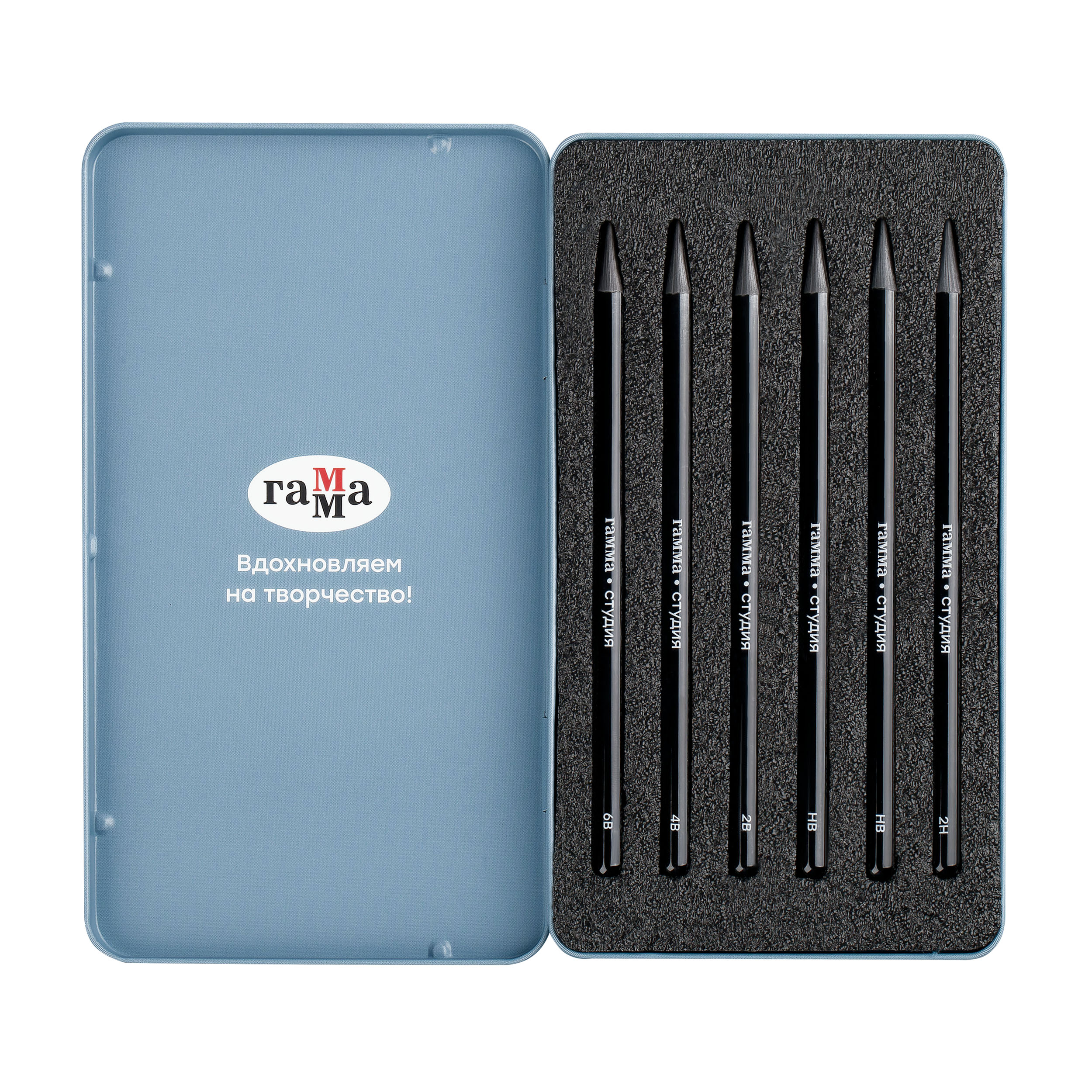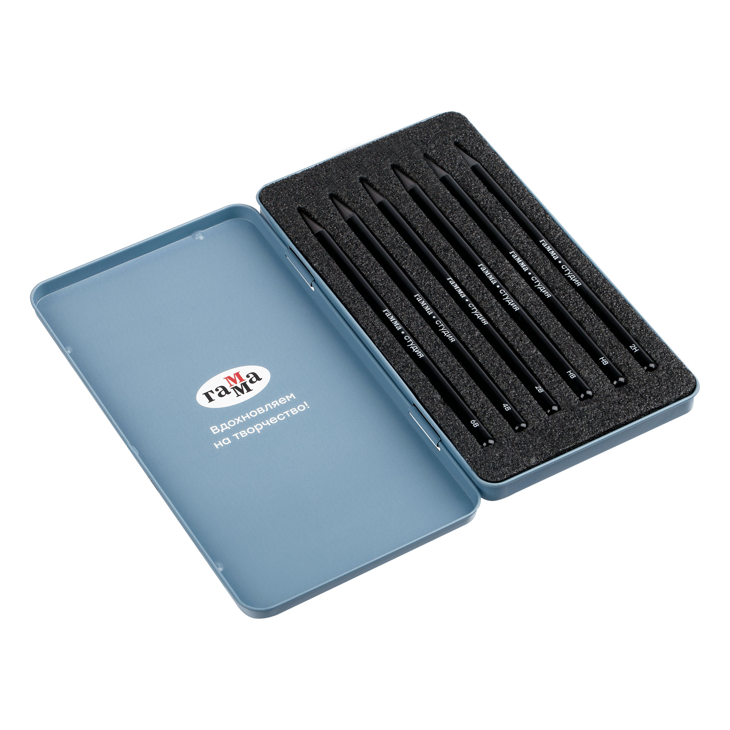 Набор карандашей цельнографитных ч/г Гамма "Студия" 6шт., 6B-2H, метал. упаковка 220822_6