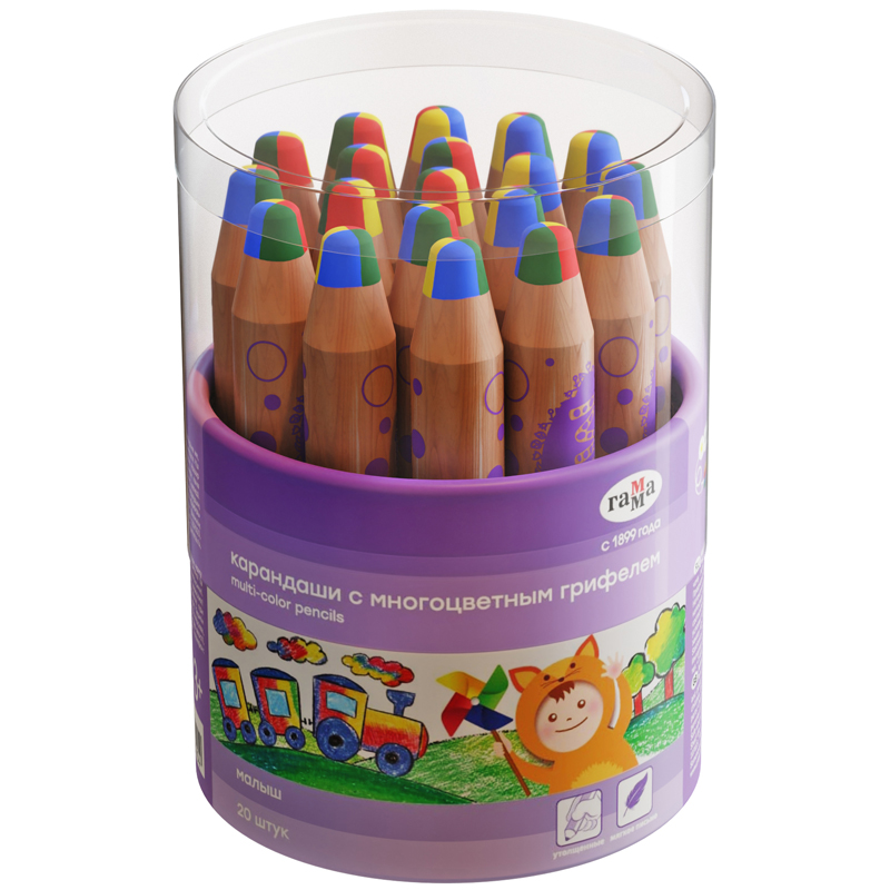 Карандаш с многоцветным грифелем Гамма "Малыш", утолщенный, заточен., в пластиковой тубе 80220220