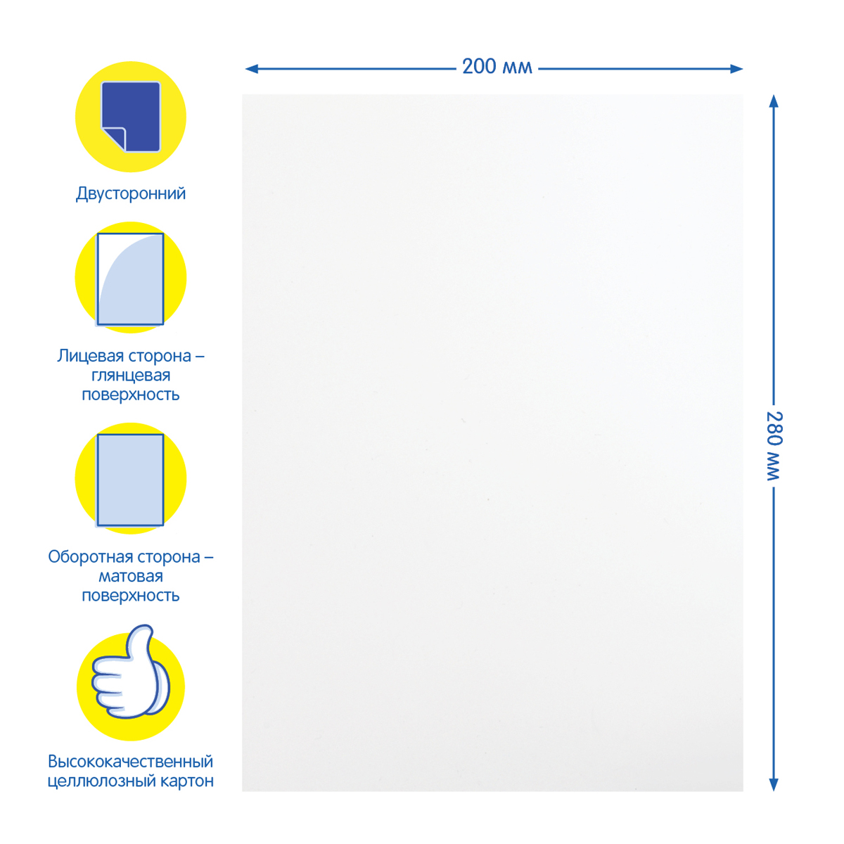 Картон белый мелованный, формат А4, 10 листов, с ярлыком на скрепке. Плотность 390 гр./м2