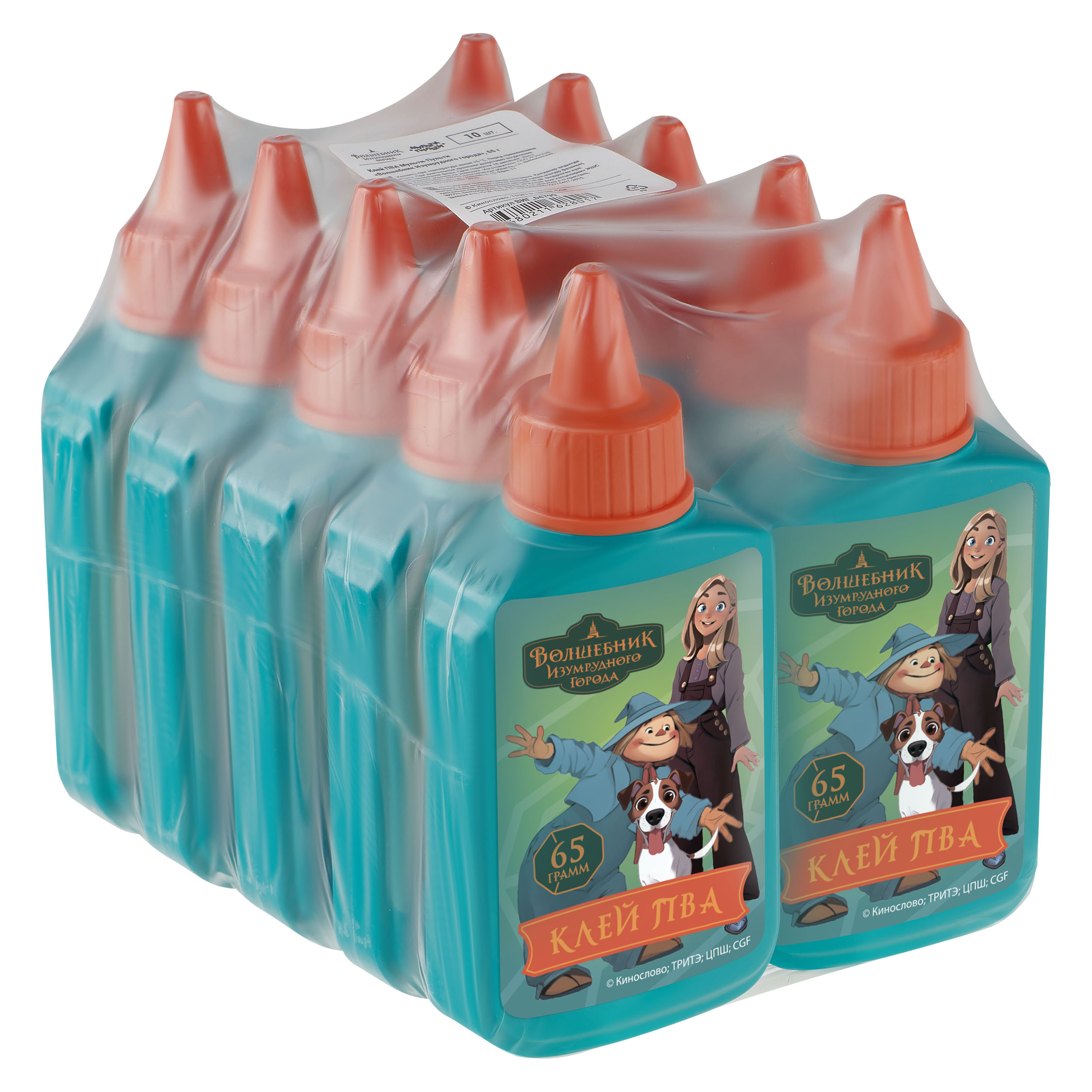 Клей ПВА «Мульти-Пульти» серии «Волшебник Изумрудного города» — отличный материал для уроков труда и занятий с ребёнком дома. Предназначен для склеивания бумаги, картона, дерева, стекла, кожи и ткани. Вес — 65 г. Пластиковая упаковка оснащена экономичным дозатором, который не позволит ребёнку вылить сразу слишком много. Клей морозостойкий. Выдерживает пять циклов замораживания и оттаивания при температуре до – 40 °С. Рекомендуется хранить при температуре выше + 5 °C. Перед использованием необходимо взболтать. Товары серии «Волшебник Изумрудного города» — 100 % оригинальная продукция. Дизайн упаковки с любимыми героями фильма вдохновит на творчества. Клей упакован в термоусадочную плёнку по 10 штук. Для детей старше 3-х лет. • Вес: 65 г; • Морозоустойчивость: да; • Наличие дозатора: да; • Упаковка единицы товара: тюбик.