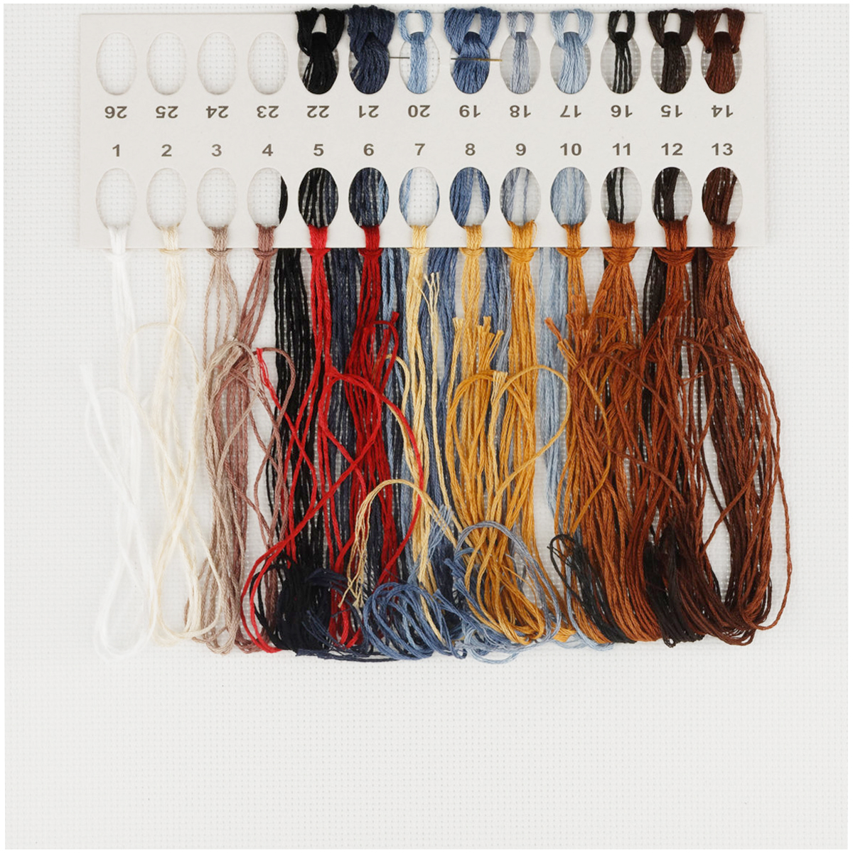 хлопковые нитки мулине, разобранные на органайзере,