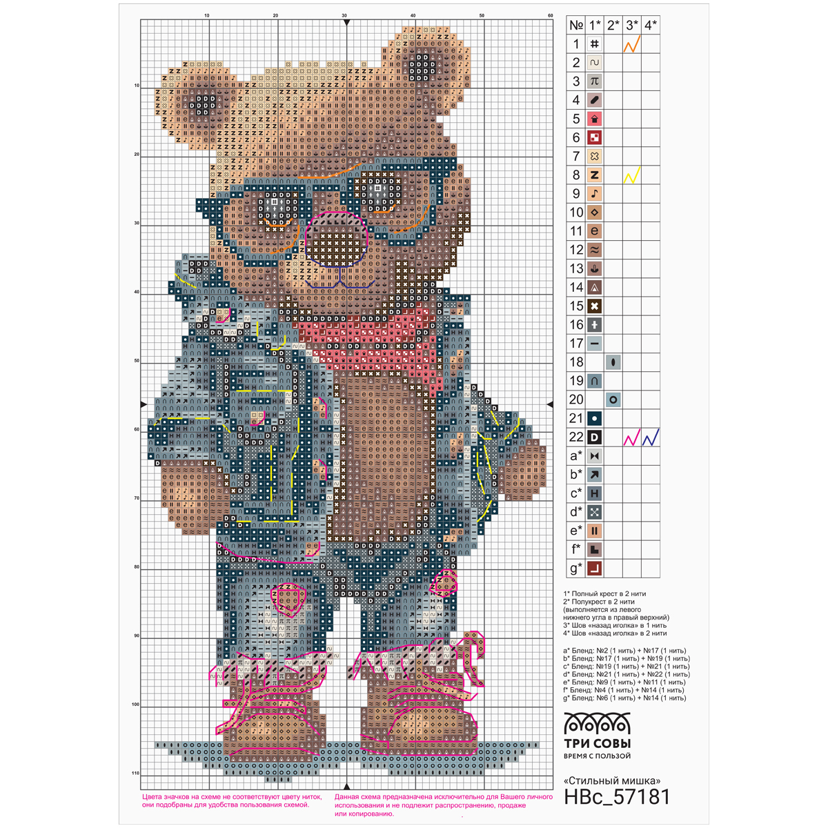 Набор для вышивания крестиком ТРИ СОВЫ "Стильный мишка", 11*20см, пакет с европодвесом НВс_57181