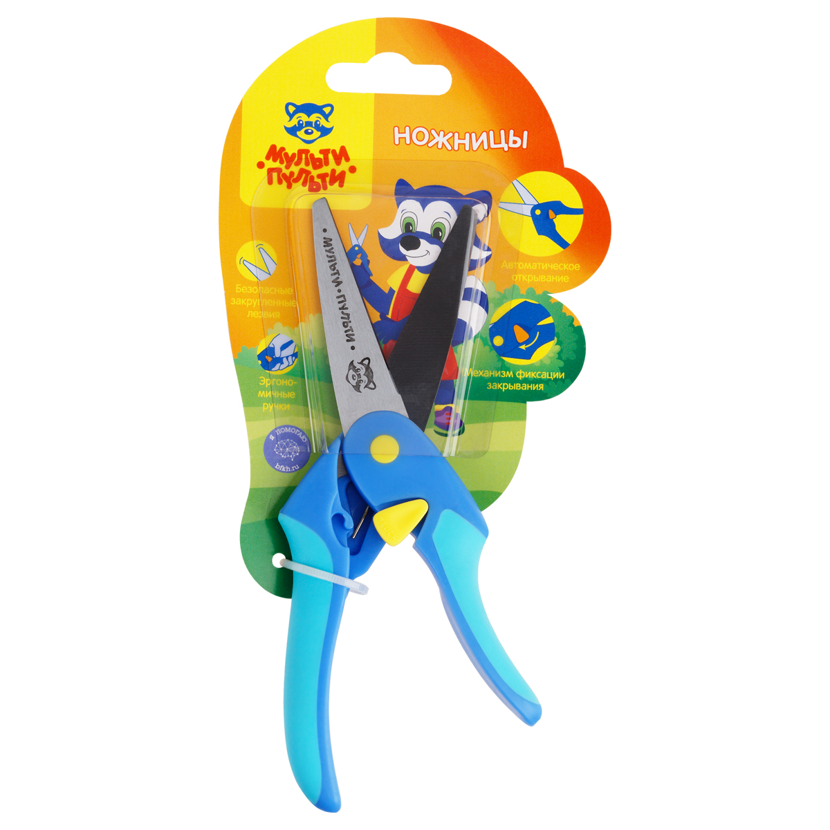 Ножницы детские Мульти-Пульти "Приключения Енота", 16см, синие, автосмыкание, европодвес MP_52635