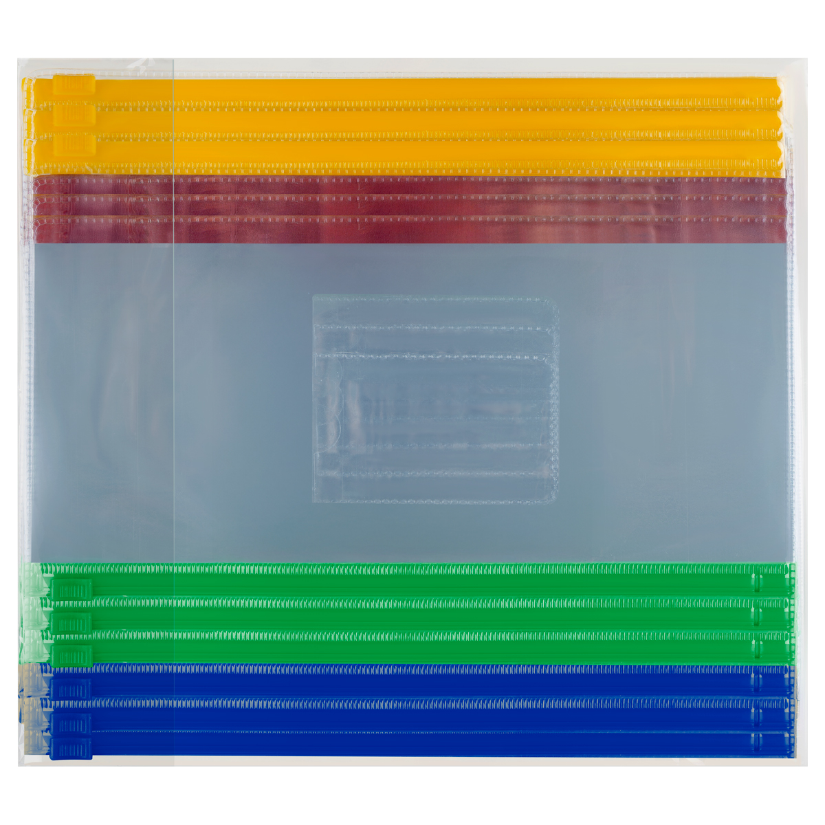 Папка-конверт на молнии удобна для перевозки ж/д и авиа билетов. Разноцветные застёжки помогут распределить документы и не перепутать впоследствии. • Размер: 255*130мм; • Цвет: прозрачный.