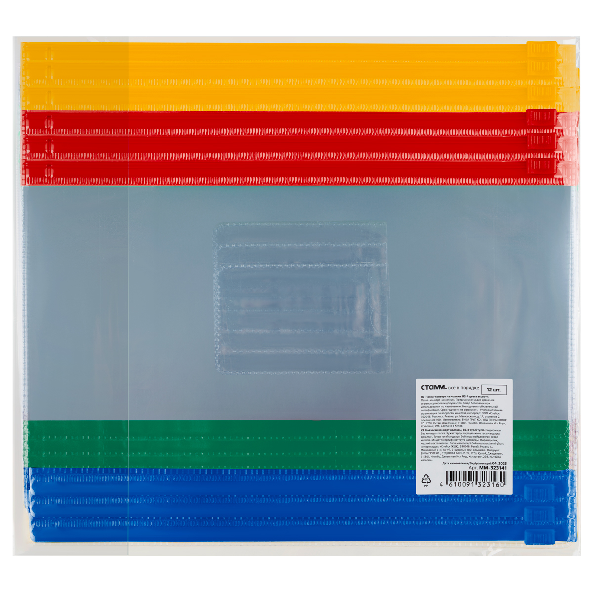 Папка-конверт на молнии СТАММ формата В5 защищает документы от повреждений, пыли и влаги. Изделие плотно закрывается на молнию с плоским бегунком. Молния обеспечивает легкий и быстрый доступ к бумагам. Папка-конверт размером 210*280 мм и толщиной 120 мкм изготовлена из ПВХ с глянцевой текстурой, который защищает изделие от сминания и других повреждений. Имеет удобный карман для визиток на лицевой стороне. Подходит под персонализацию. Изделие имеет горизонтальную ориентацию. Вместимость – 50 листов. Индивидуальная упаковка в пакет. • Вместимость: 50; • Формат: В5; • Цвет: прозрачный.