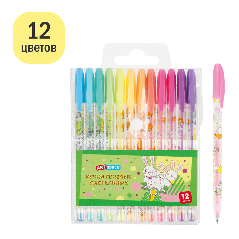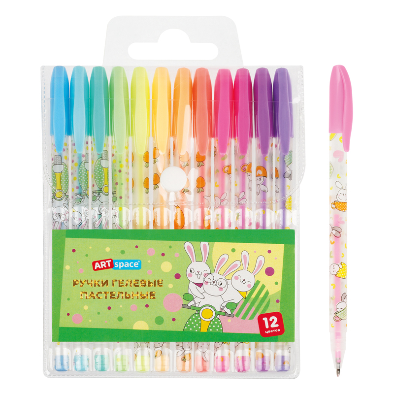 Набор гелевых ручек ArtSpace "Bunny" 12шт.,12цв., 1,0мм, пастельные, ПВХ чехол GP12_96934
