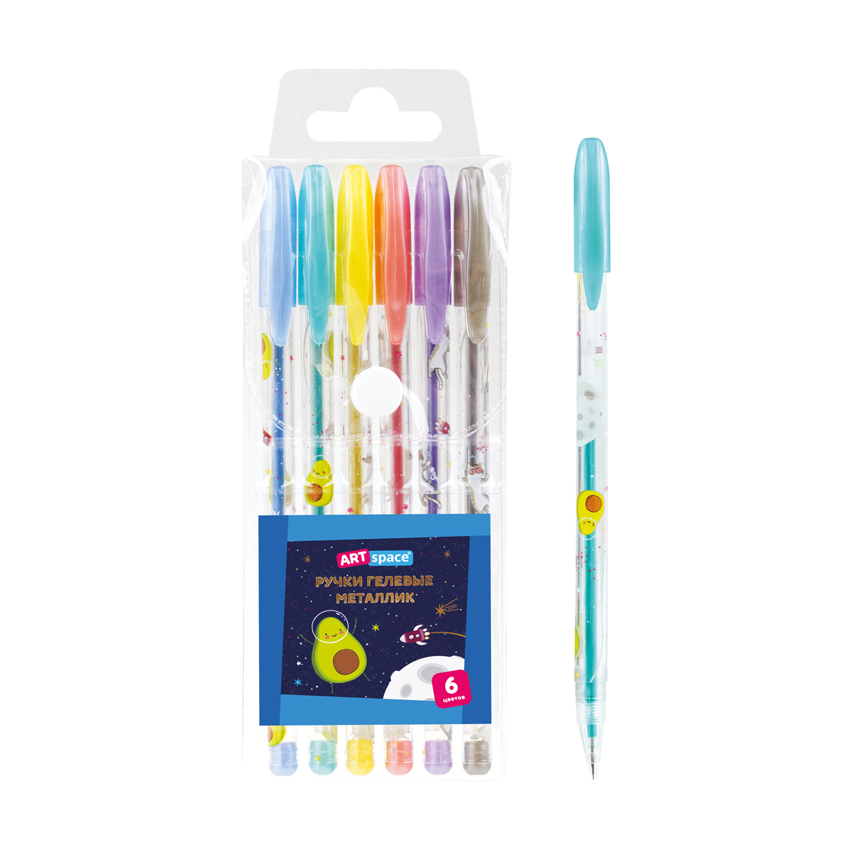 Набор гелевых ручек ArtSpace "Космические приключения" 06цв., 1,0мм, металлик, ПВХ чехол GPSA06_53104