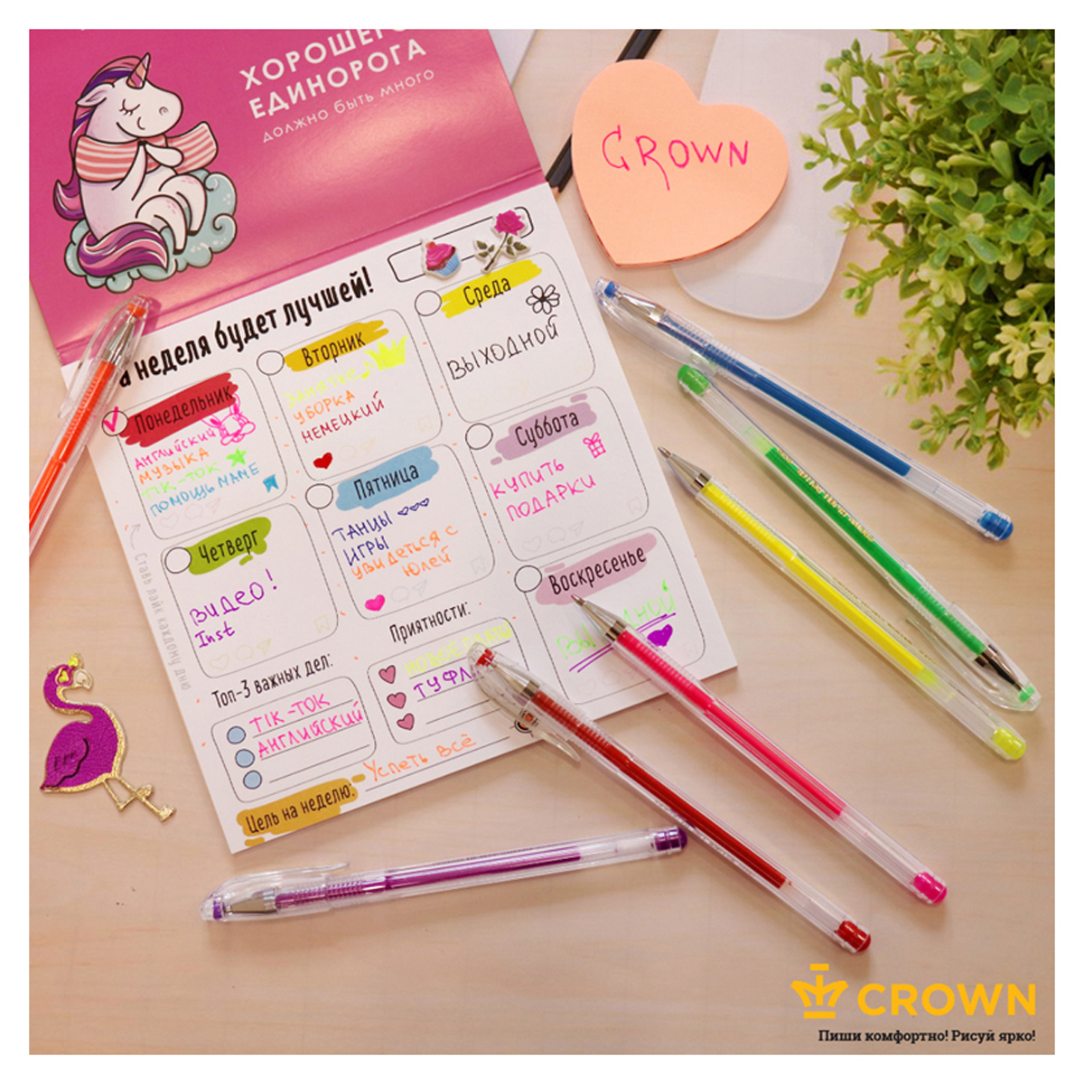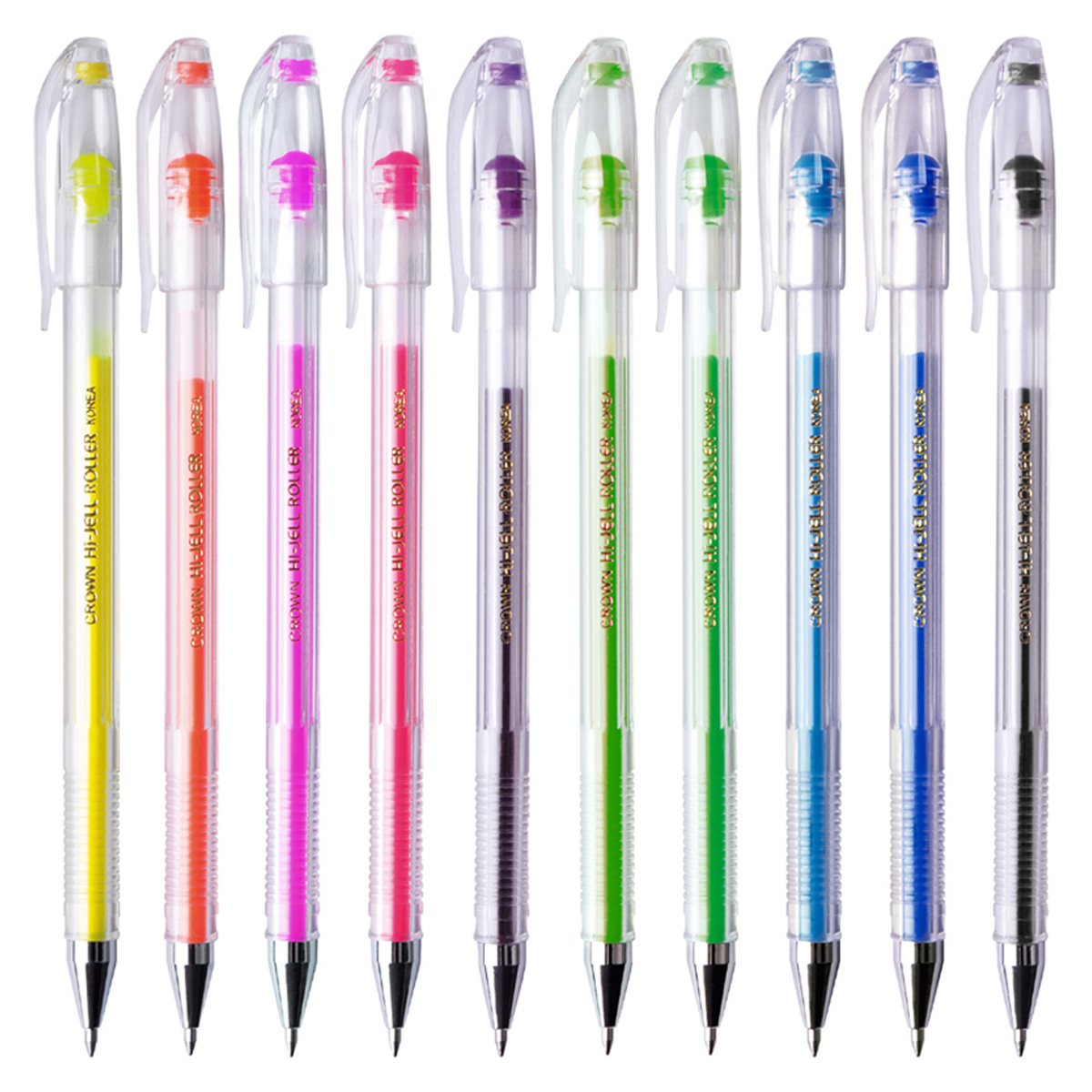 Набор гелевых ручек Crown "Hi-Jell Color" 10шт., 10цв., 0,5мм, ПВХ уп., европодвес HJR-500SET/10
