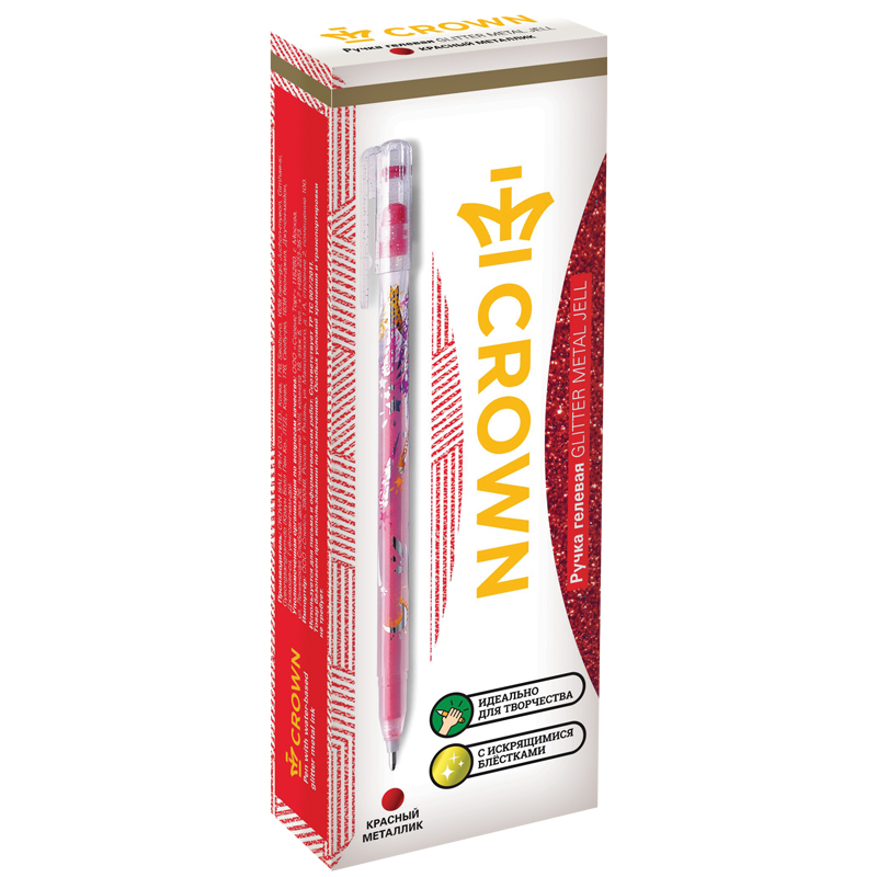 Ручка гелевая Crown "Glitter Metal Jell" красная с блестками, 1,0мм MTJ-500GLS(D)