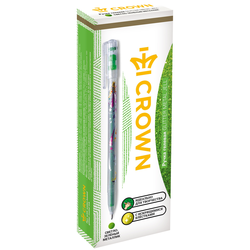 Ручка гелевая Crown "Glitter Metal Jell" светло-зеленая с блестками, 1,0мм MTJ-500GLS(D)