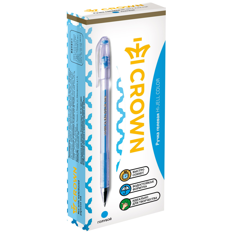Ручка гелевая Crown "Hi-Jell Color" голубая, 0,7мм HJR-500HB