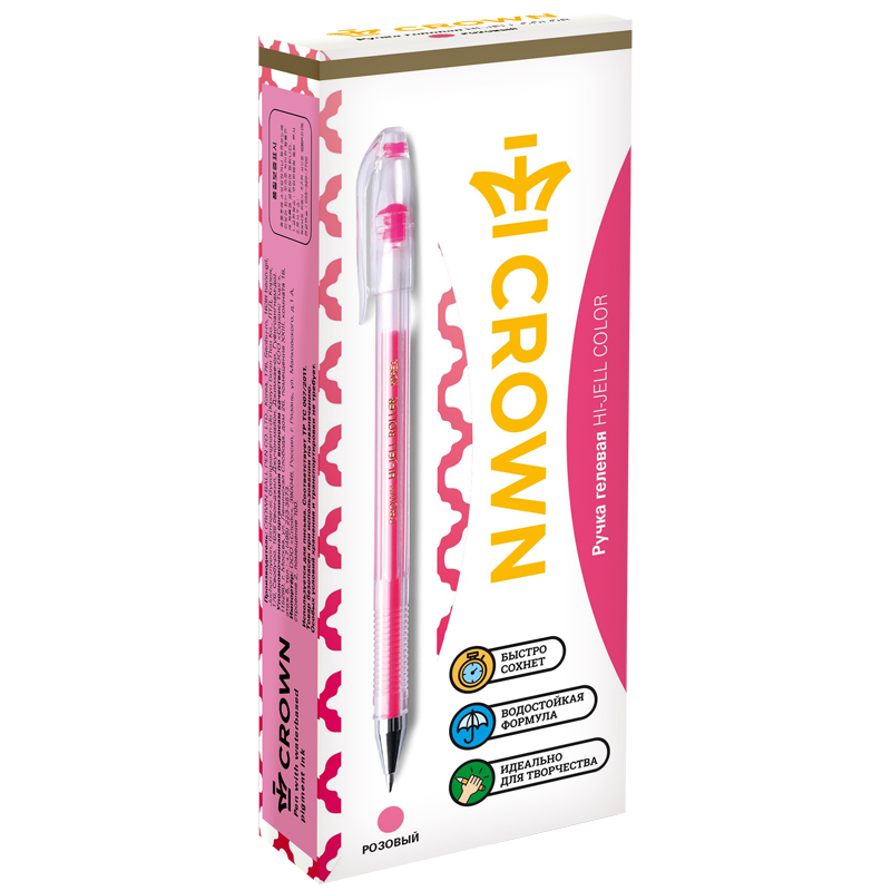 Ручка гелевая Crown "Hi-Jell Color" розовая, 0,7мм HJR-500H