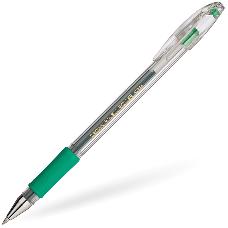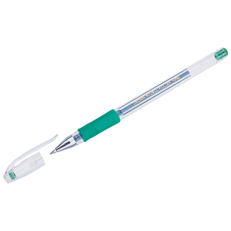 Ручка гелевая Crown "Hi-Jell Grip" зеленая, 0,5мм, грип HJR-500R