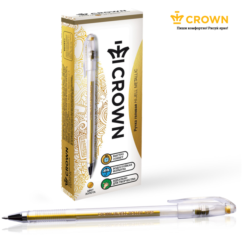 Ручка гелевая Crown "Hi-Jell Metallic" золото металлик, 0,7мм HJR-500GSM