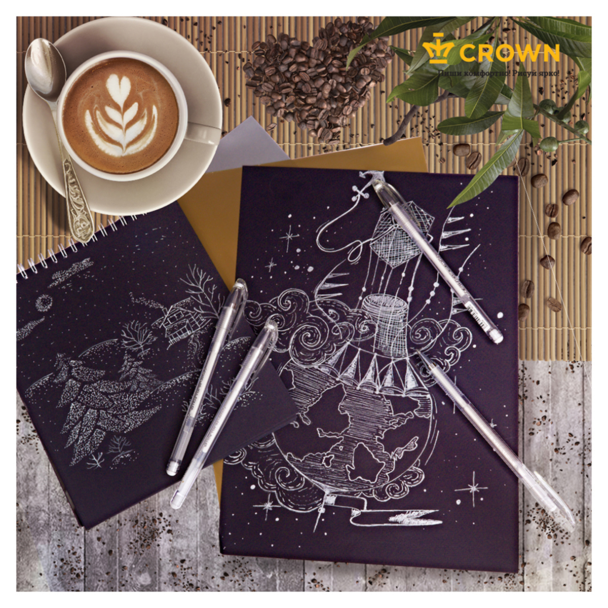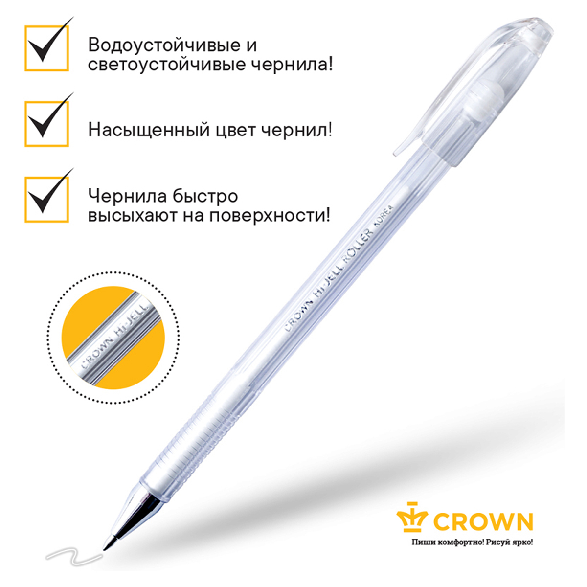 Ручка гелевая Crown "Hi-Jell Pastel" пастель белая, 0,8мм HJR-500P