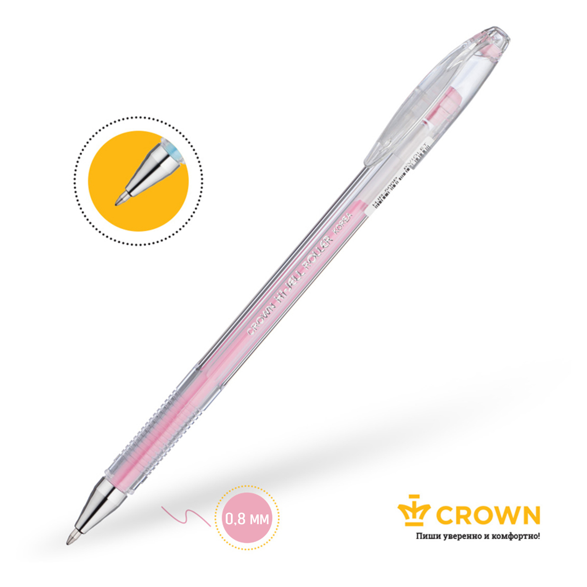 Ручка гелевая Crown "Hi-Jell Pastel" розовая пастель, 0,8мм HJR-500P