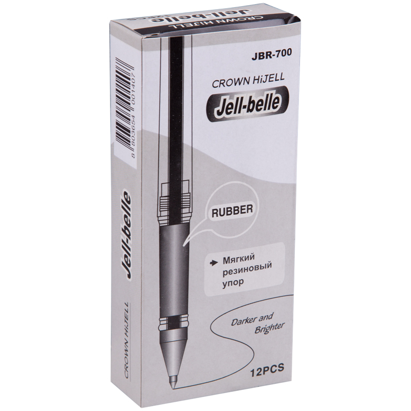 Ручка гелевая Crown "Jell-Belle" черная, 0,5мм, грип JBR-700B