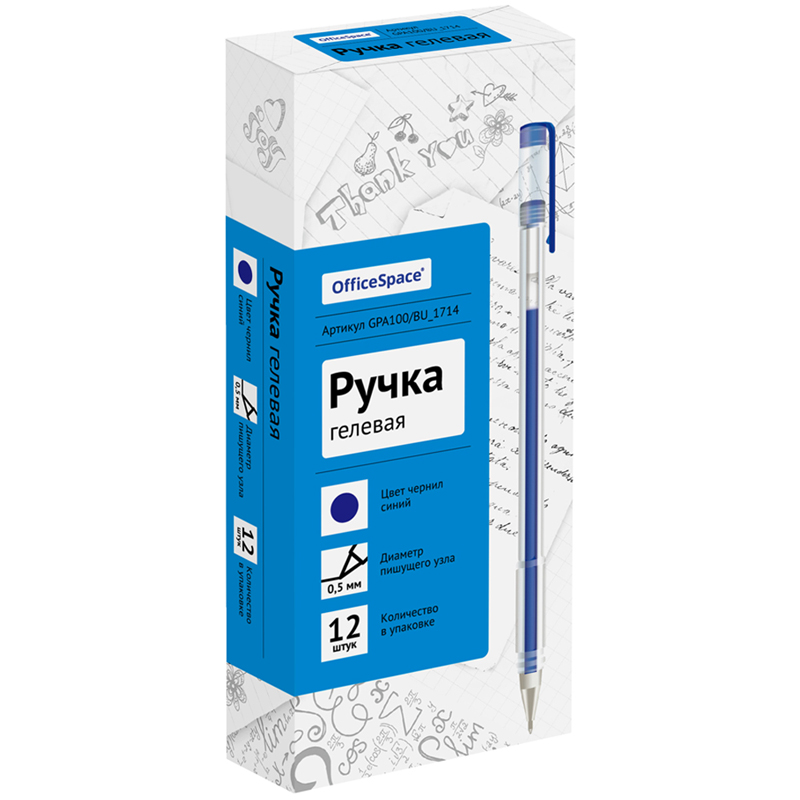 Ручка гелевая OfficeSpace синяя, 0,5мм GPA100/BU_1714