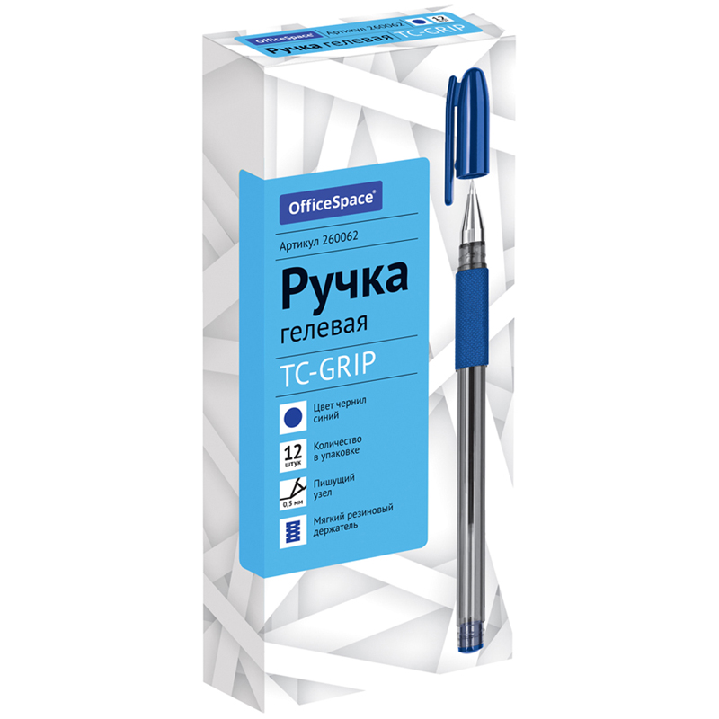 Ручка гелевая OfficeSpace "TC-Grip" синяя, 0,5мм, грип 260062