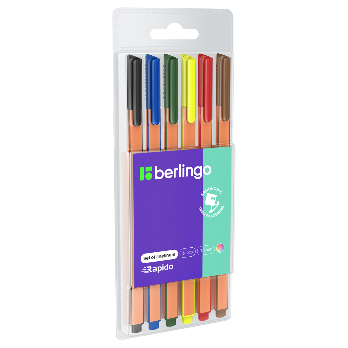 Набор капиллярных ручек Berlingo "Rapido", 06цв., 0,4мм, трехгран., европодвес CK_40006
