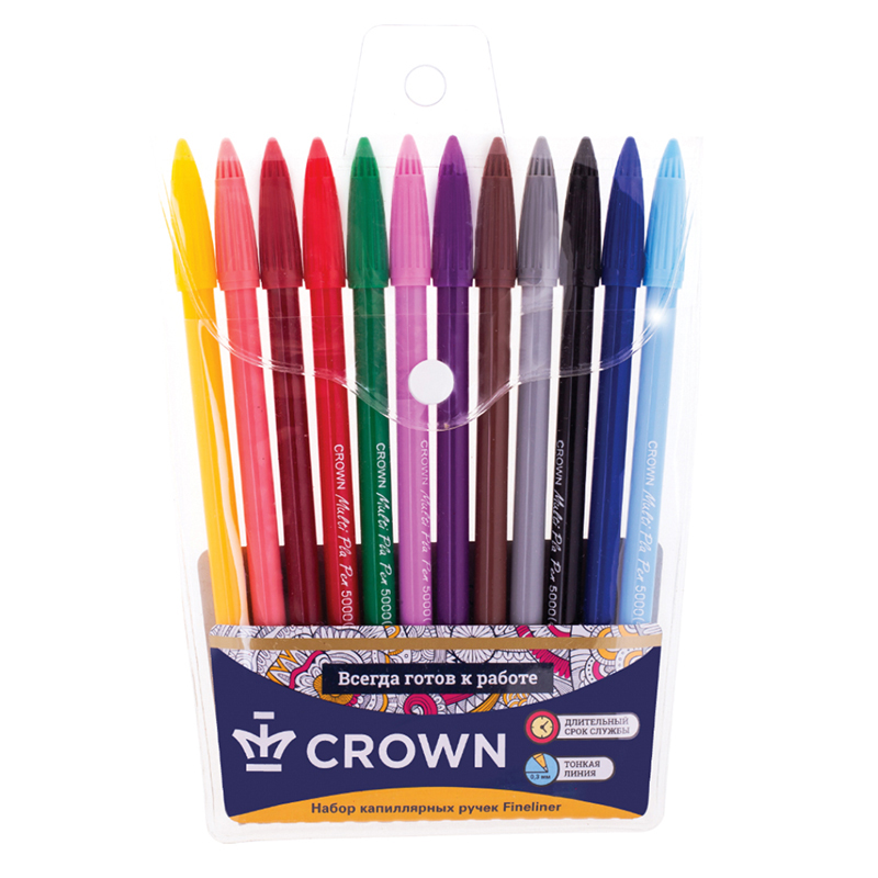 Набор капиллярных ручек Crown "MultiPla" 12цв., 0,3мм, европодвес CMP-5000SET