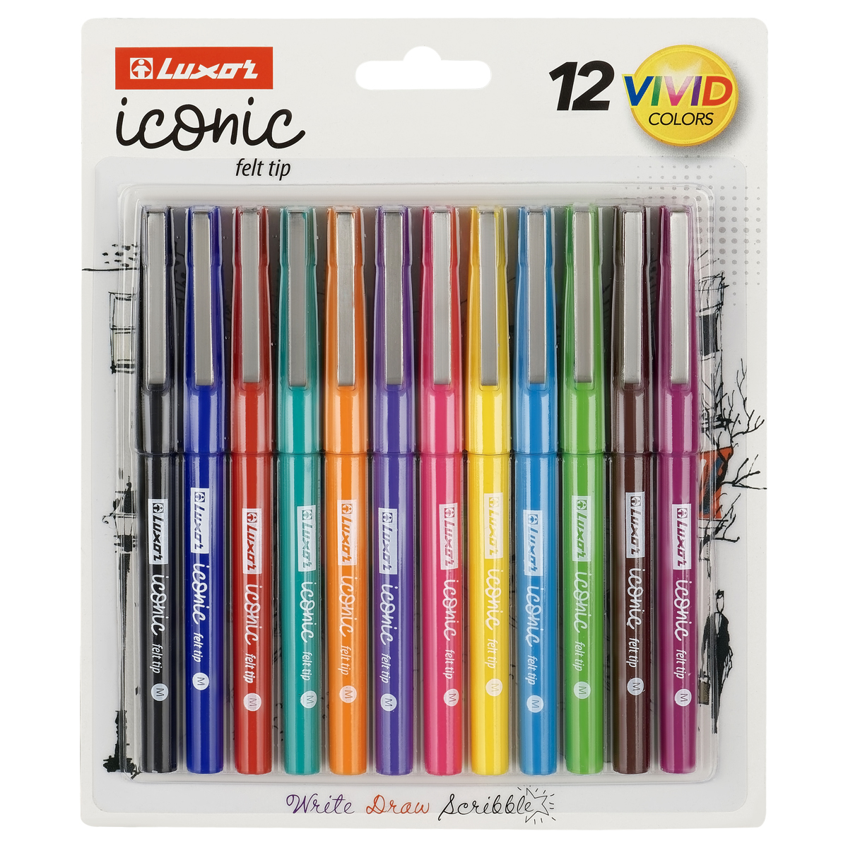 Набор капиллярных ручек Luxor "Iconic М" 12цв., 1,0мм, блистер 15800 F/12 BC