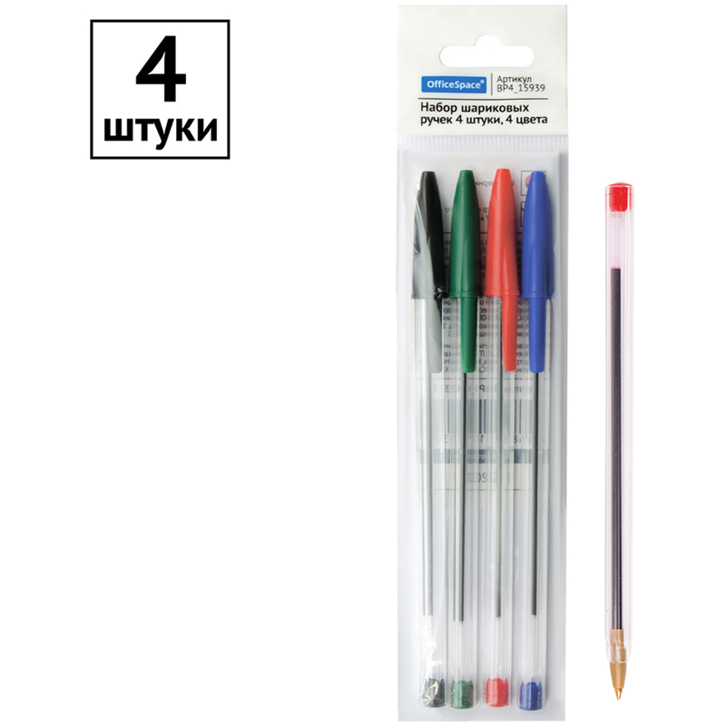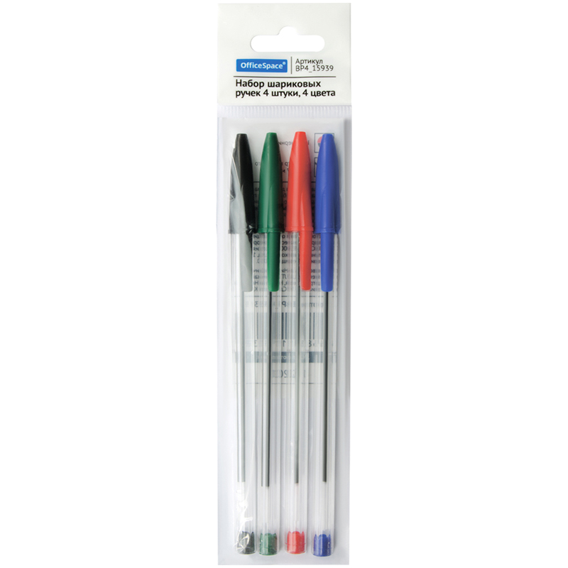Набор шариковых ручек OfficeSpace, 4шт., 4цв., 0,7мм, европодвес BP4_15939