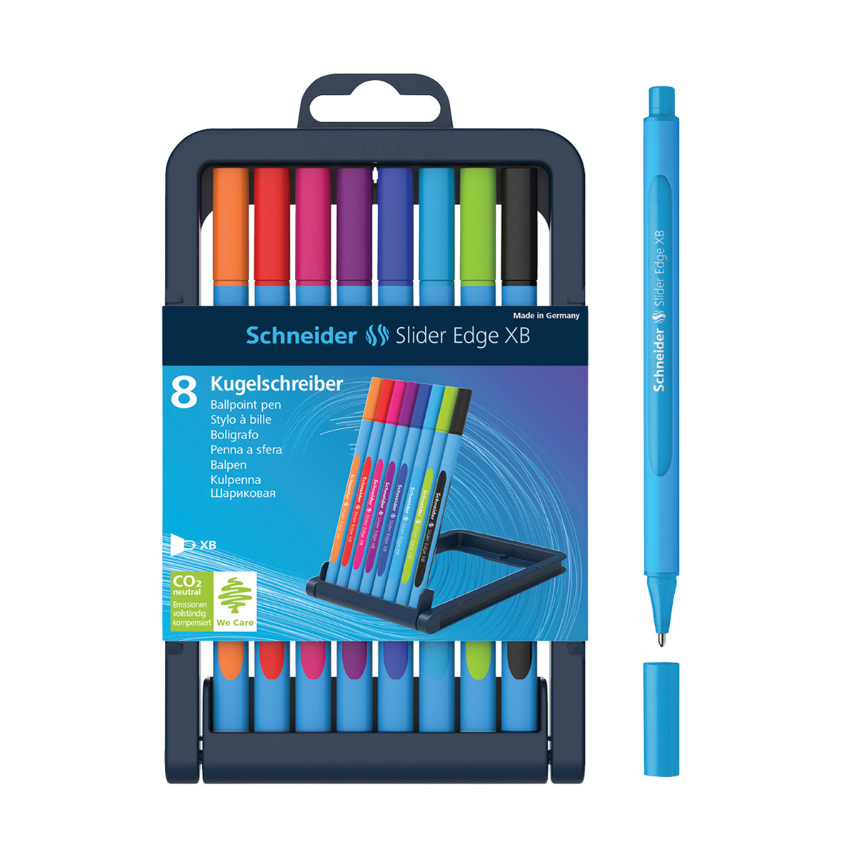 Набор шариковых ручек Schneider "Slider Edge" 8шт., 08цв., 1,4мм, трехгран., пластиковый футляр 152279