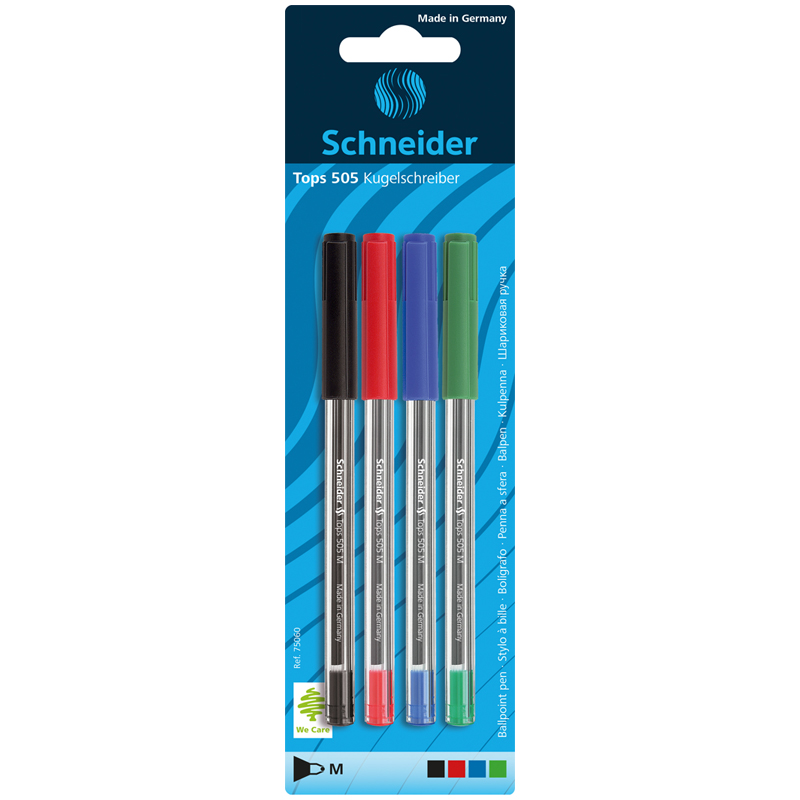 Набор шариковых ручек Schneider "Tops 505 M" 4шт., ассорти, 1,0мм, прозрачный корпус, блистер 75060