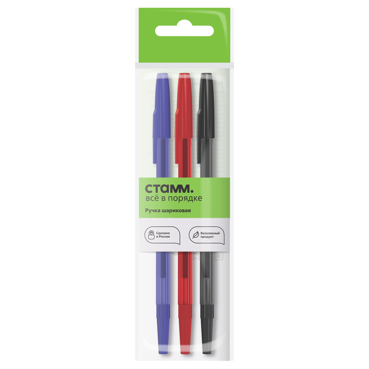 Набор шариковых ручек СТАММ "049" 3шт., 03цв., 0,7мм, тонированный корпус, пакет с европодвесом РШ-30418-3