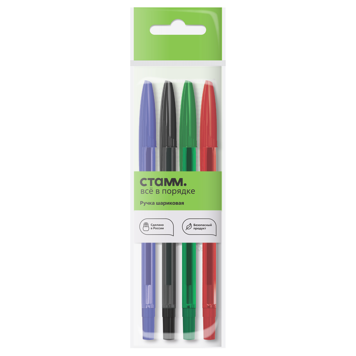 Набор шариковых ручек СТАММ "111" 4шт., 04цв., 1,0мм, тонированный корпус, пакет с европодвесом РШ-30420-4