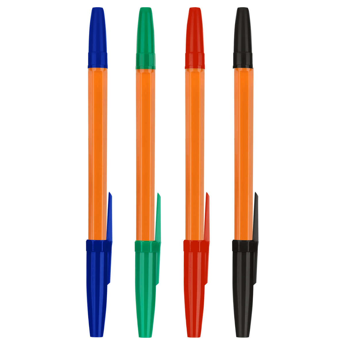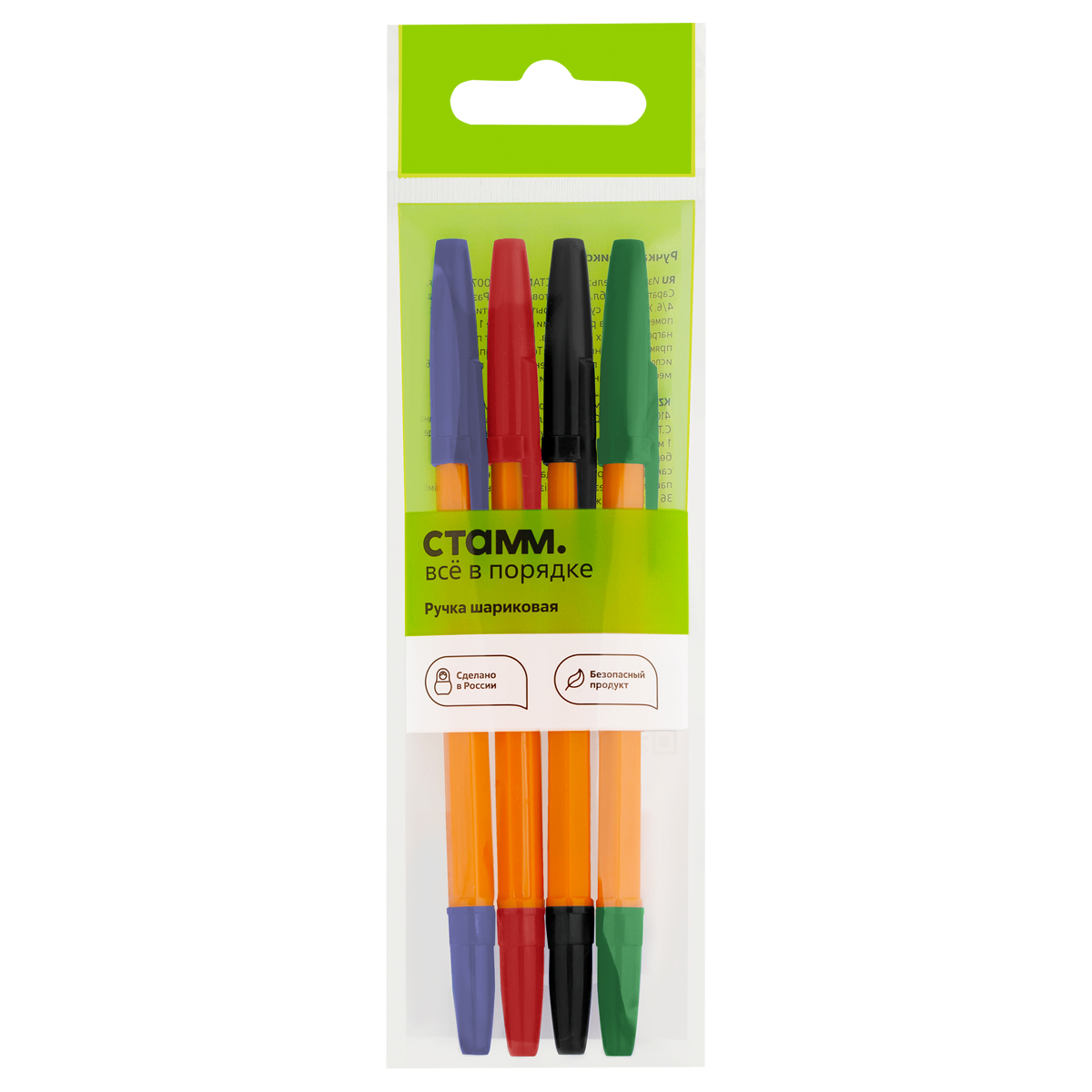 Набор шариковых ручек СТАММ "Оптима" 4шт., 04цв., 1,0мм, оранжевый корпус, пакет с европодвесом РШ-30431-4