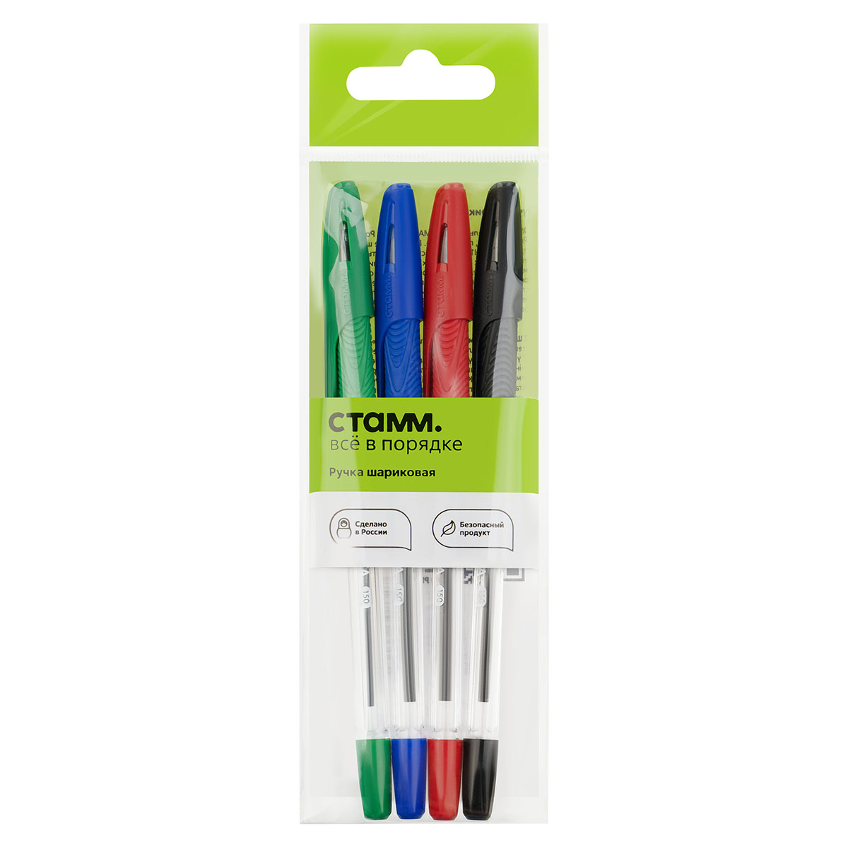 Набор шариковых ручек СТАММ "Орбита 150" 4шт., 4цв., 0,7мм, пакет с европодвесом РШ-30832-4