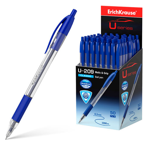 Ручка шариковая автомат. Erich Krause U-209 Classic Matic&Grip СИНЯЯ 1мм, игла, грип, к/у