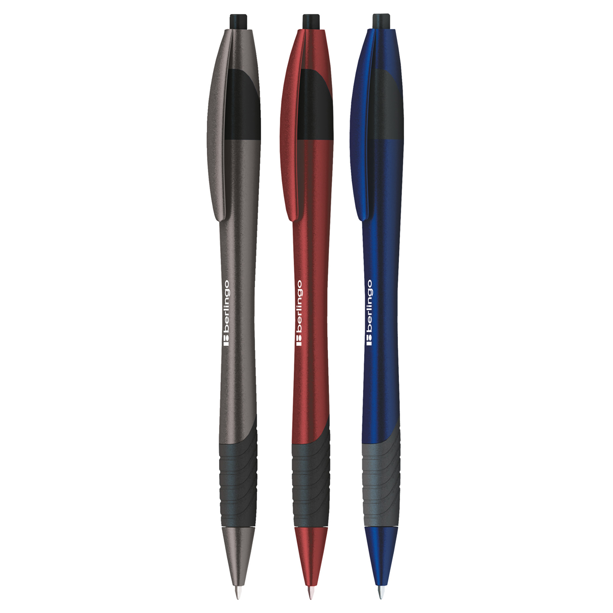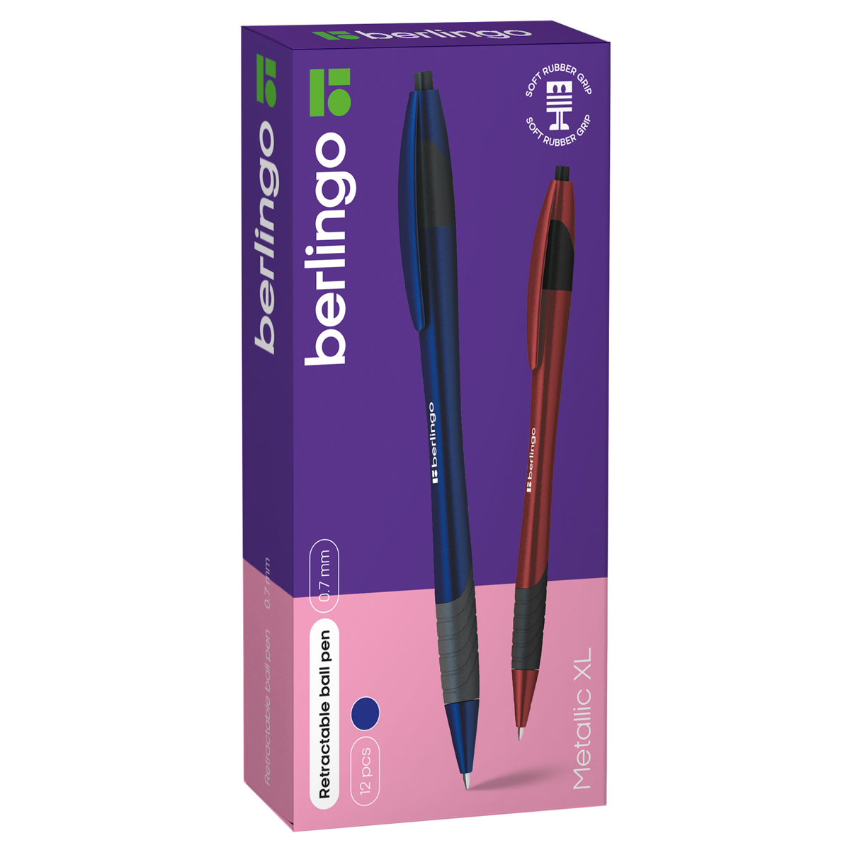 Ручка шариковая автоматическая Berlingo "Metallic XL" синяя, 0,7мм, грип, корпус ассорти CBm_70782