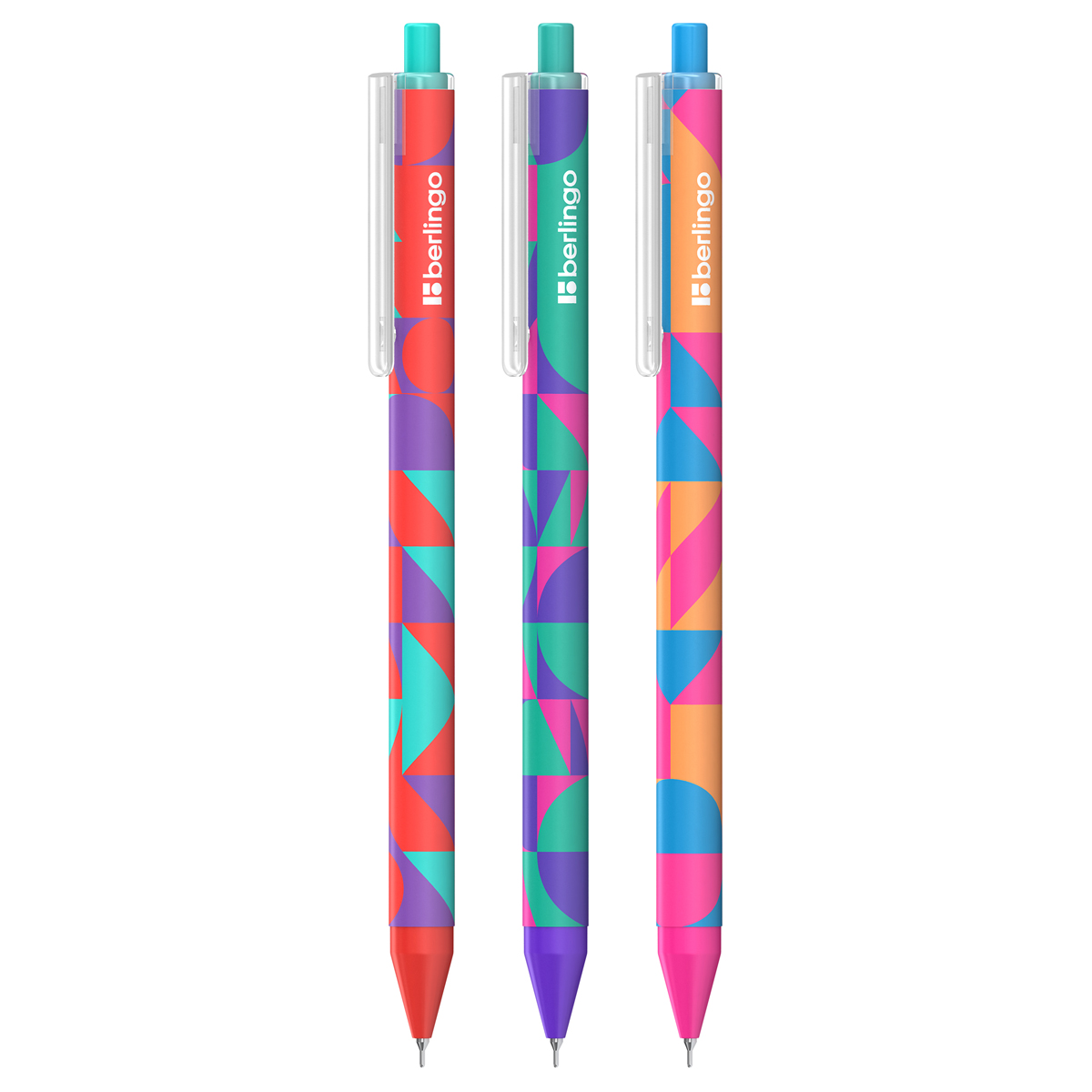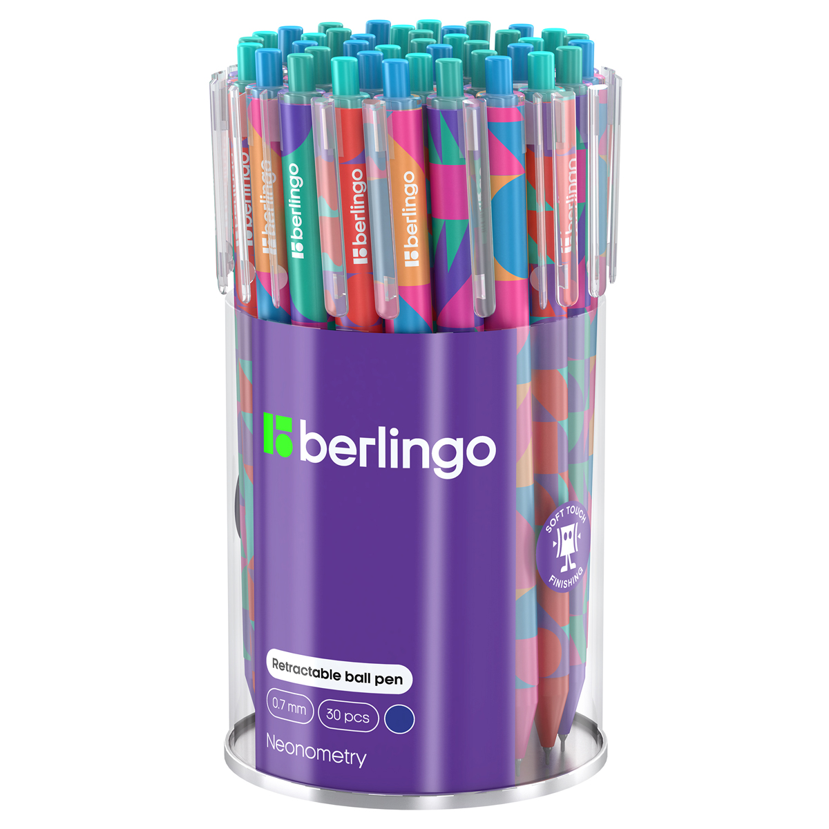 Ручка шариковая автоматическая Berlingo "Neonometry" синяя, 0,7мм, рисунок на корпусе, soft touch, ассорти CBm_07S23