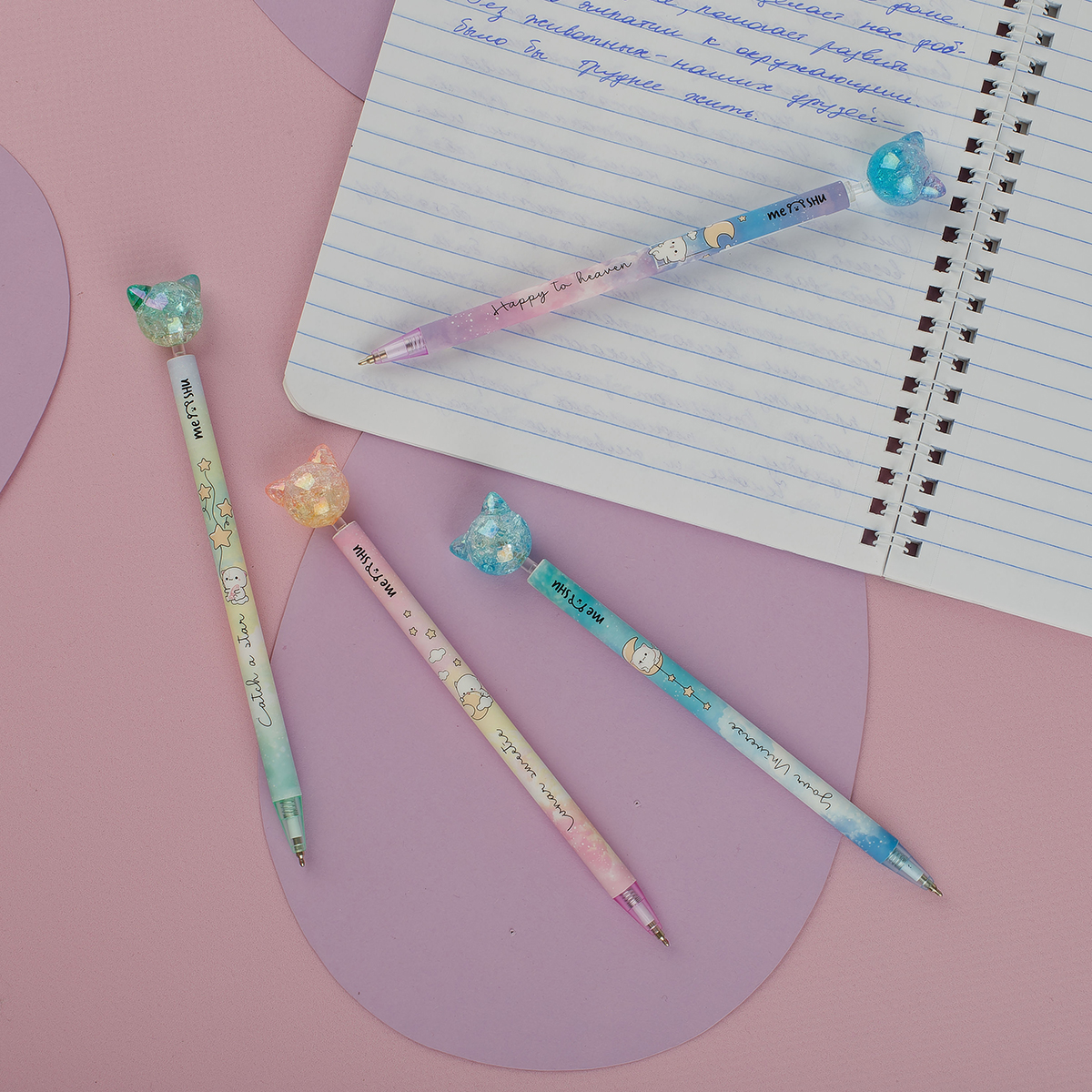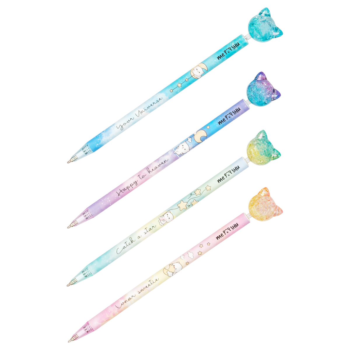 Ручка шариковая автоматическая MESHU "Cute Cats" синяя, 0,7мм, корпус ассорти, с топпером MS_52358