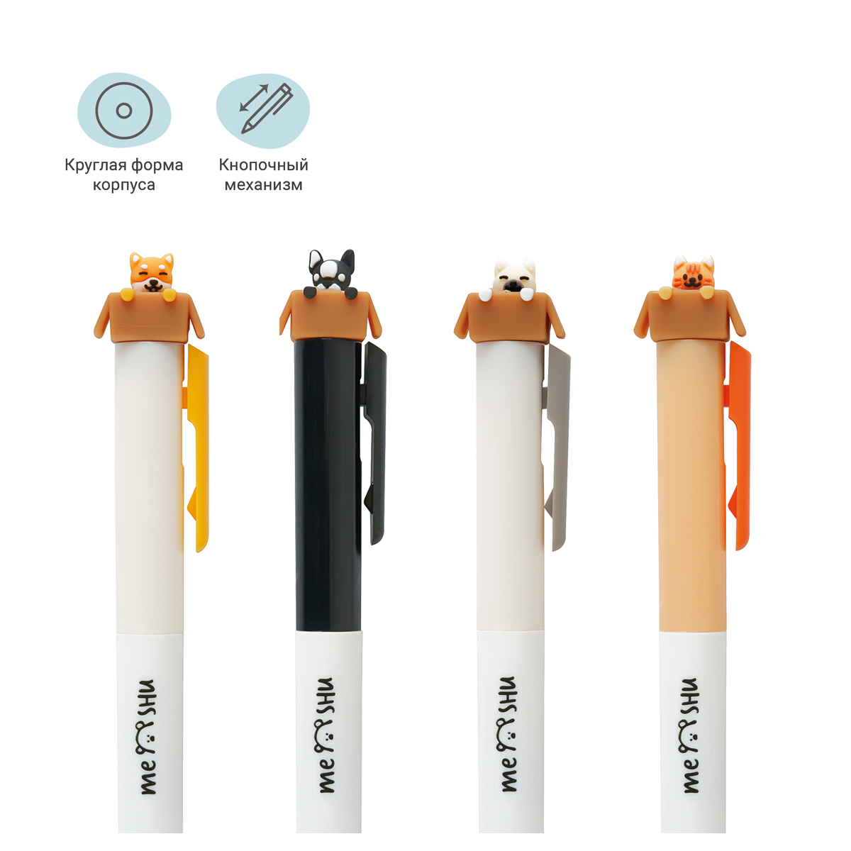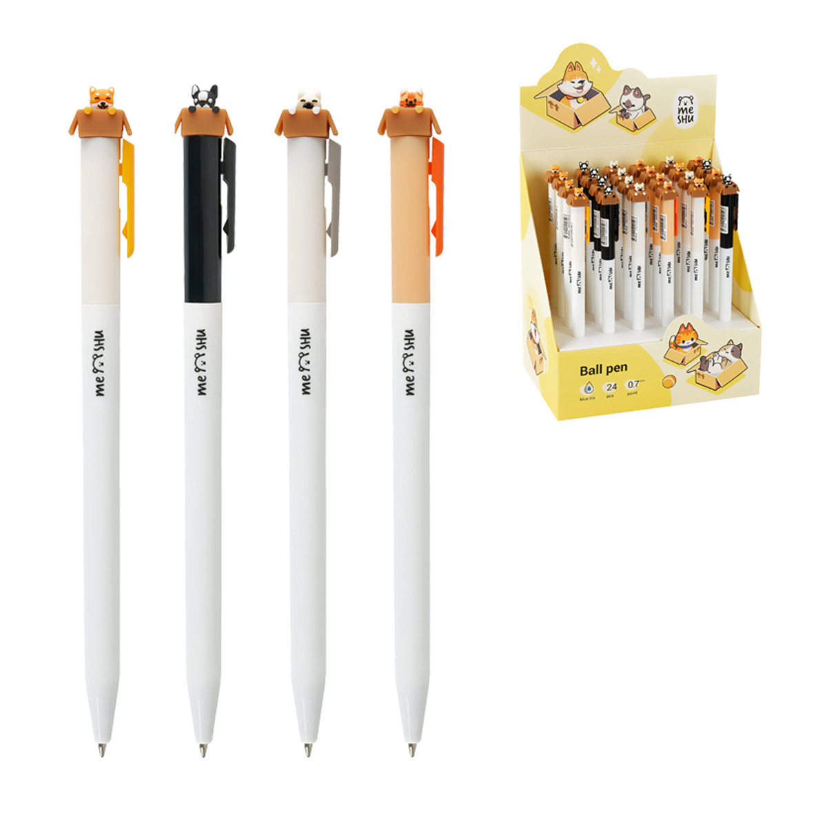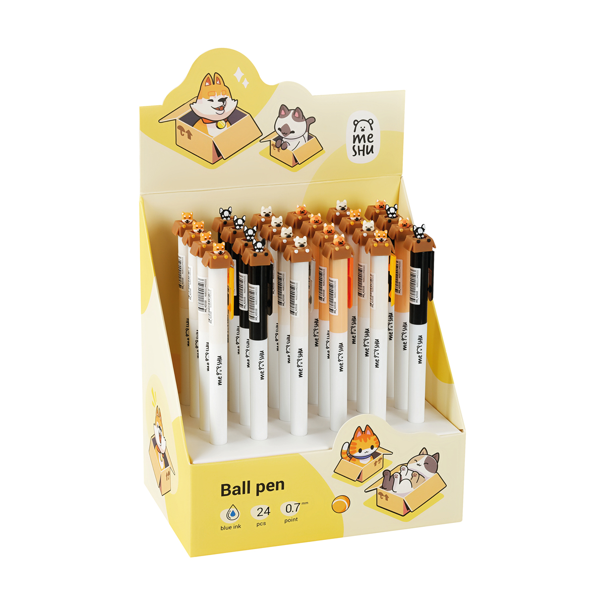 Ручка шариковая автоматическая MESHU "Meow&Woof", синяя, 0,7мм, корпус ассорти MS_42510
