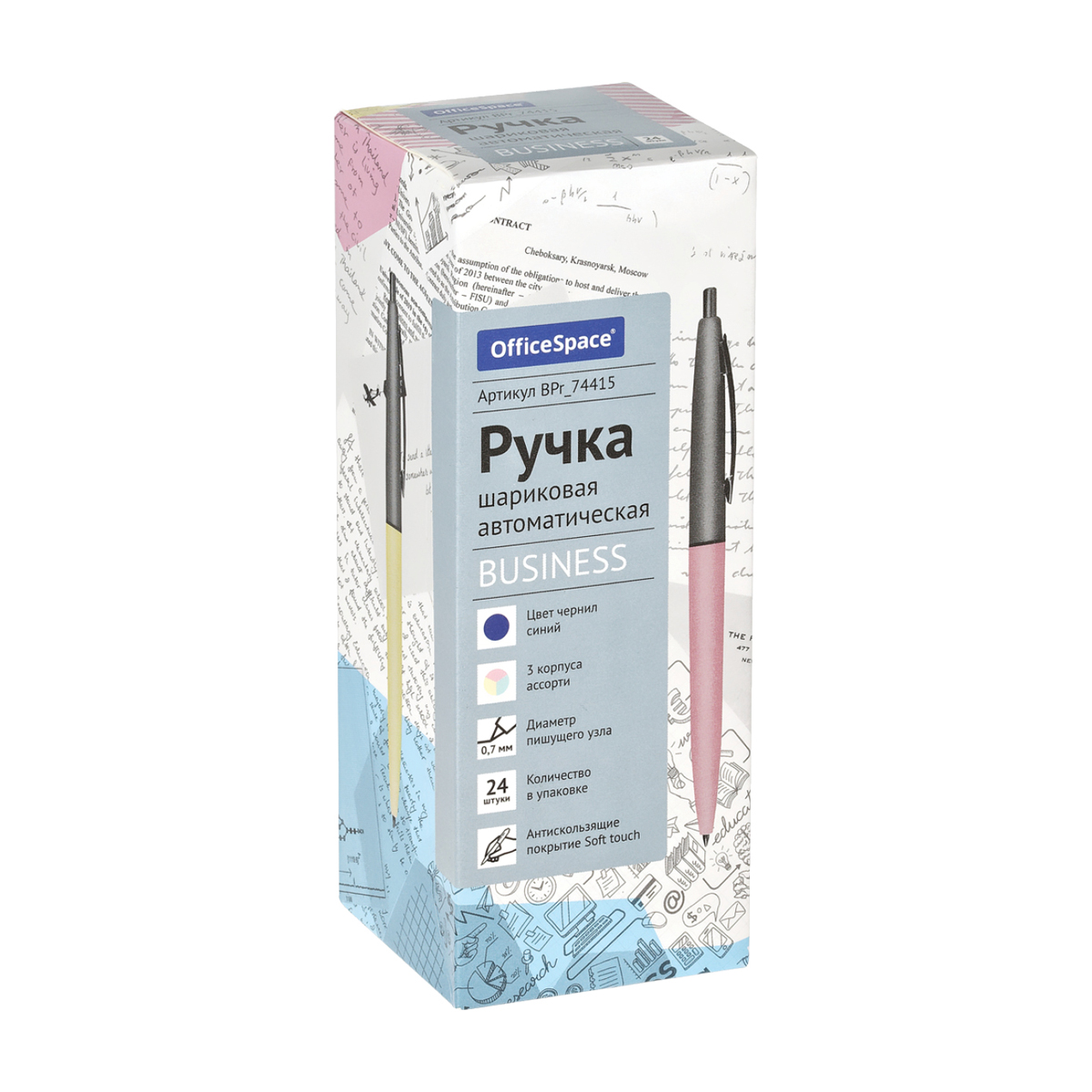 Ручка шариковая автоматическая OfficeSpace "Business", синяя, 0,7мм, soft-touch, корпус ассорти (BPr_74415)