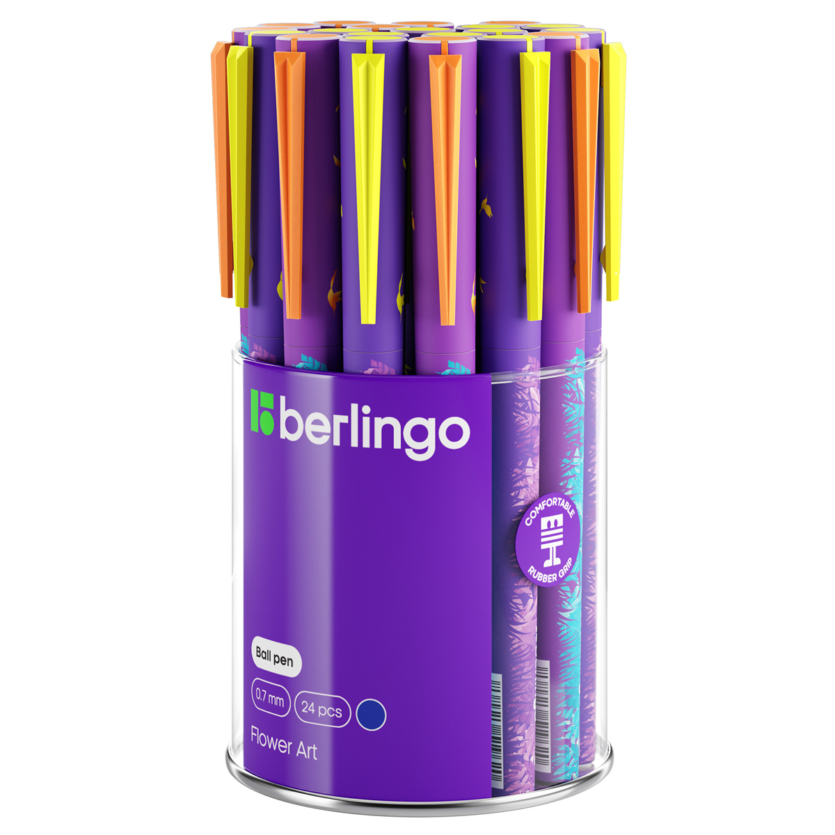 Ручка шариковая Berlingo "Flower Art" синяя, 0,7мм, грип, рисунок на корпусе, ассорти CBp_07S20
