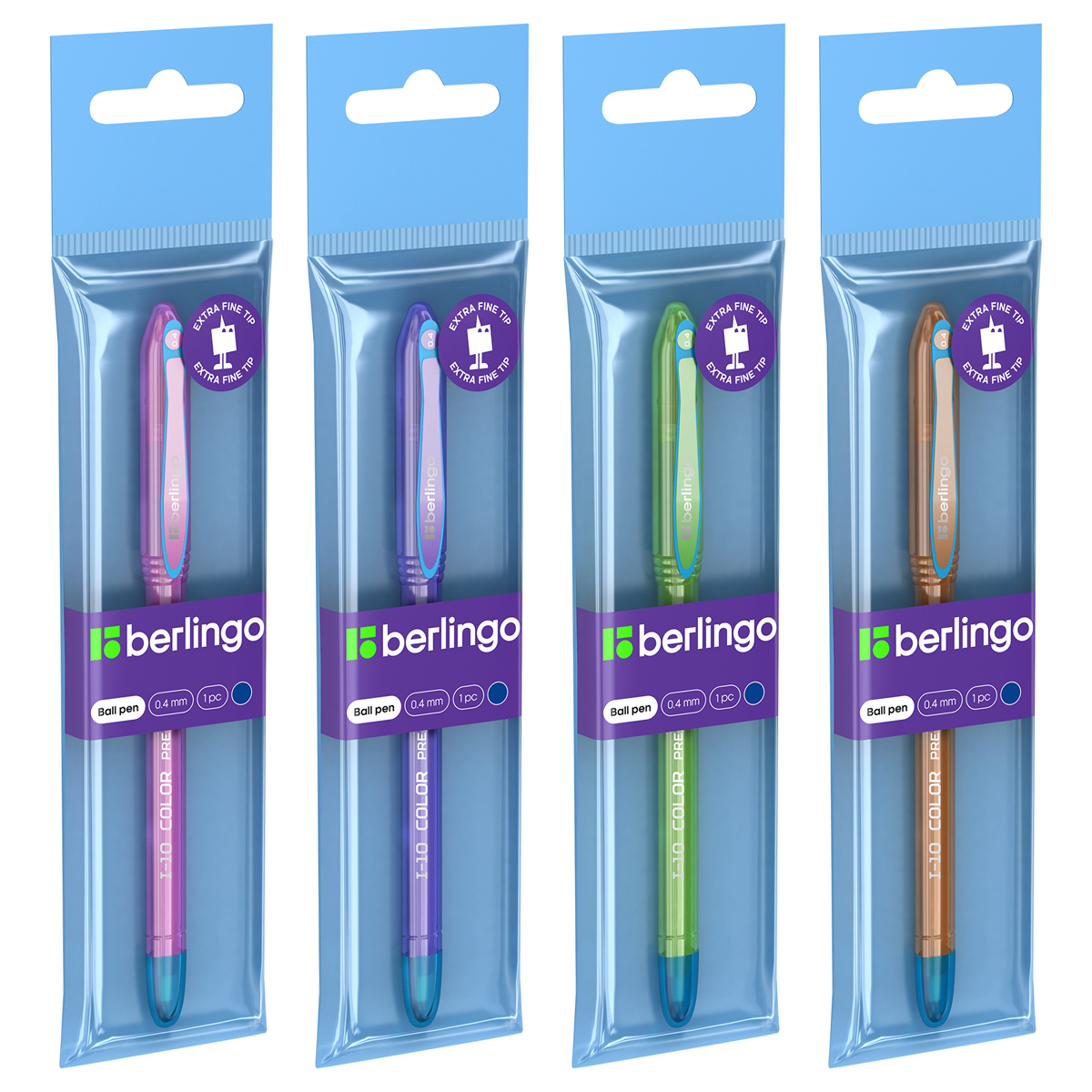 Ручка шариковая Berlingo "I-10 Color" 0,4мм, синяя, корпус ассорти, пакет с европодвесом CBp_40015_1