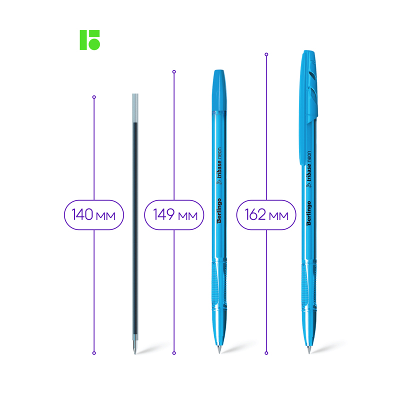 Ручка шариковая Berlingo "Tribase Neon" синяя, 0,7мм, корпус ассорти CBp_70932