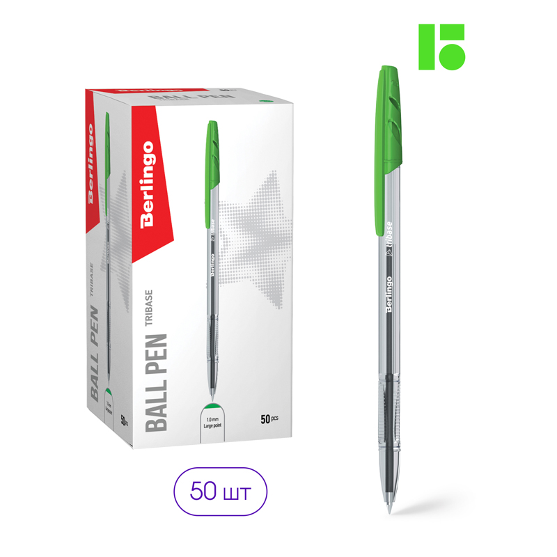 Ручка шариковая Berlingo "Tribase" зеленая, 1,0мм CBp_10904