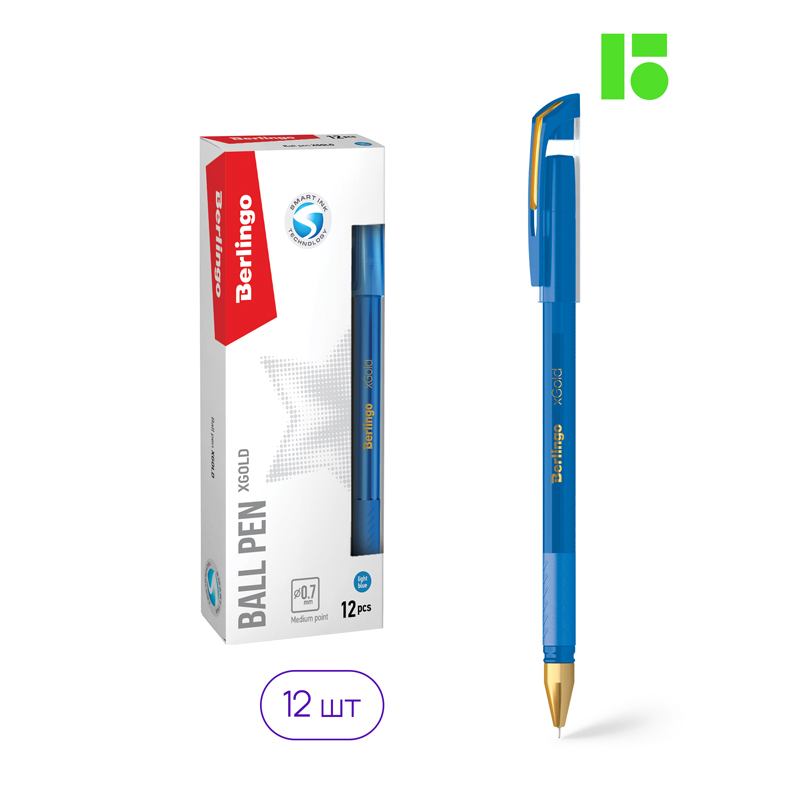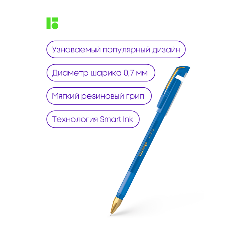 Ручка шариковая Berlingo "xGold" голубая, 0,7мм, игольчатый стержень, грип CBp_07506
